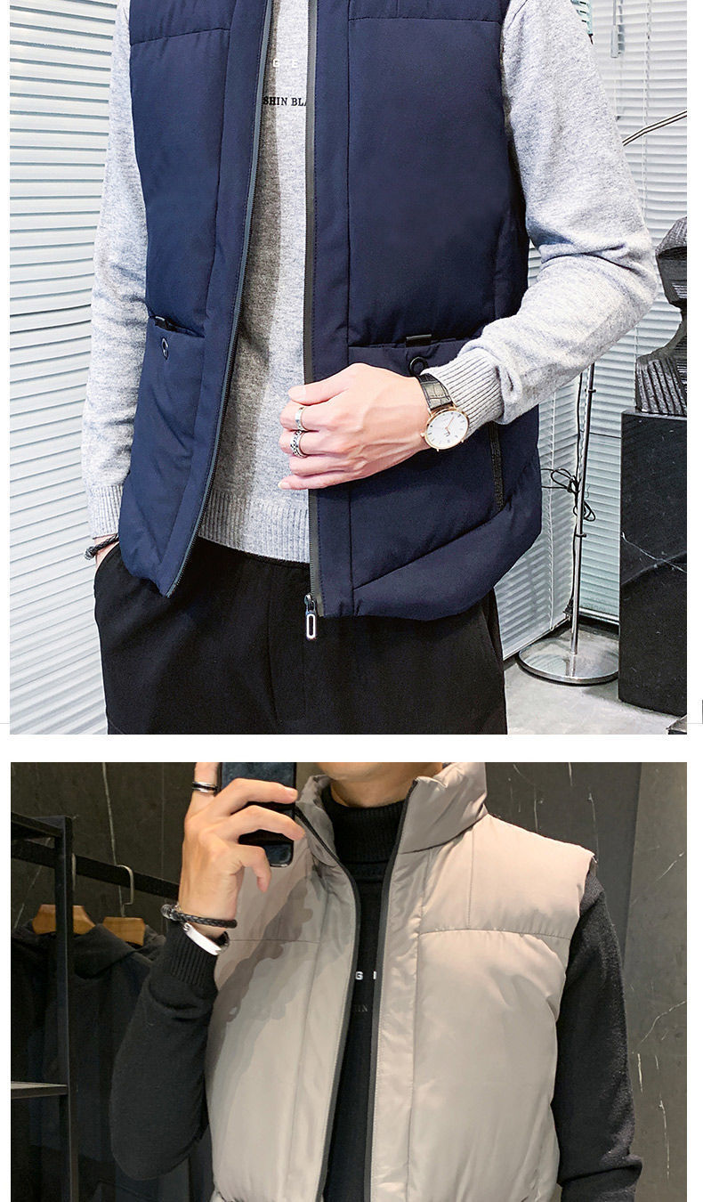 캐주얼 패션 외부 조끼 착용 남자 가을 겨울 새로운 수직 칼라 조끼 한국식 코트 스포츠 플러스 사이즈 두껍게
