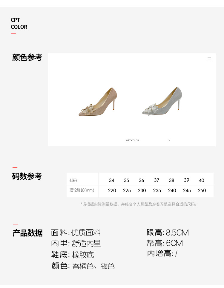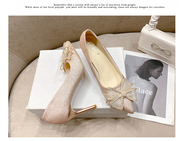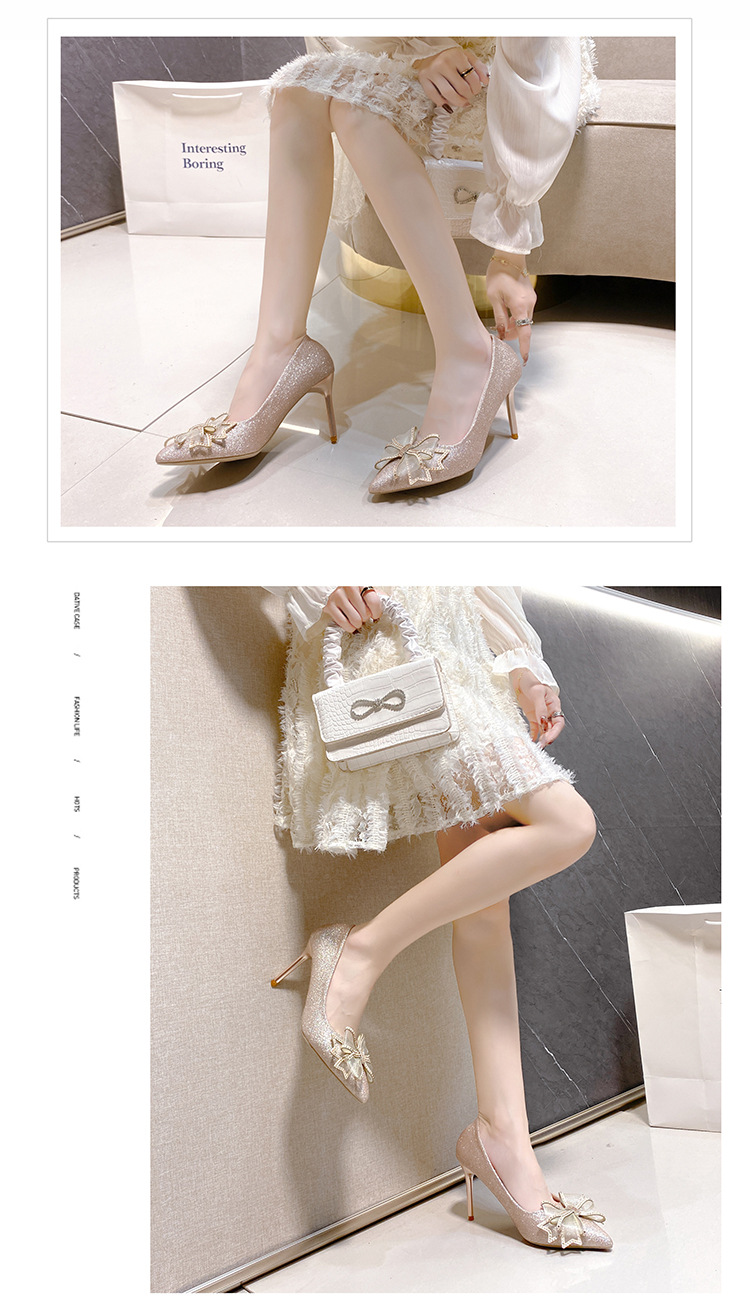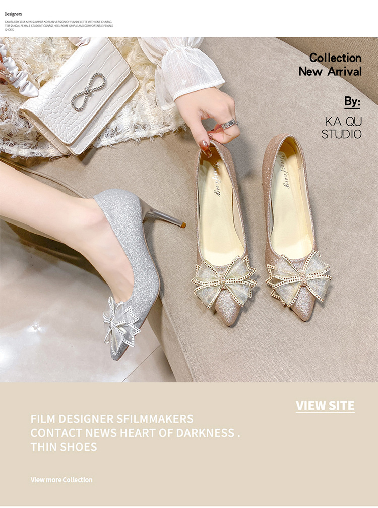 실버 샴페인 하이힐 Bowknot 기질 사교계 프랑스 웨딩 신발 틈새 하이 엔드 헤수 웨딩 원피스스토어 가기