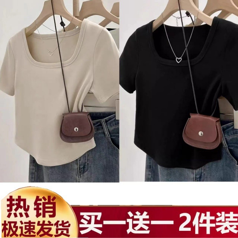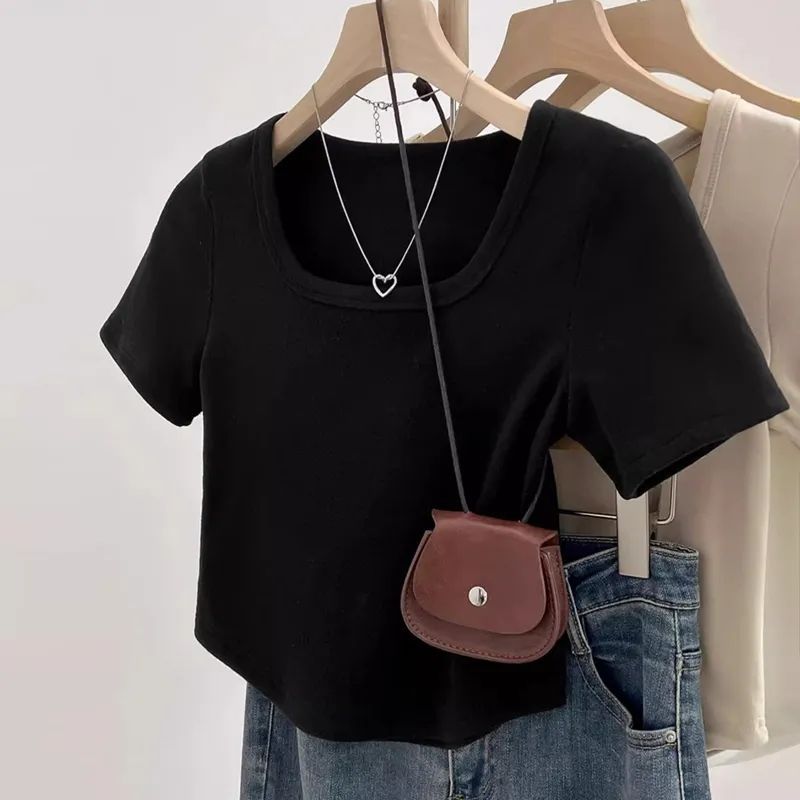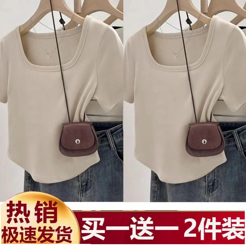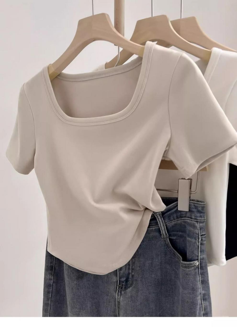 싱글/투피스 숄더 스퀘어 칼라 반팔 셔츠 여성용 여름 슬림핏 올매치 커브드 헴 스파이스 걸 병 옷스토어 가기