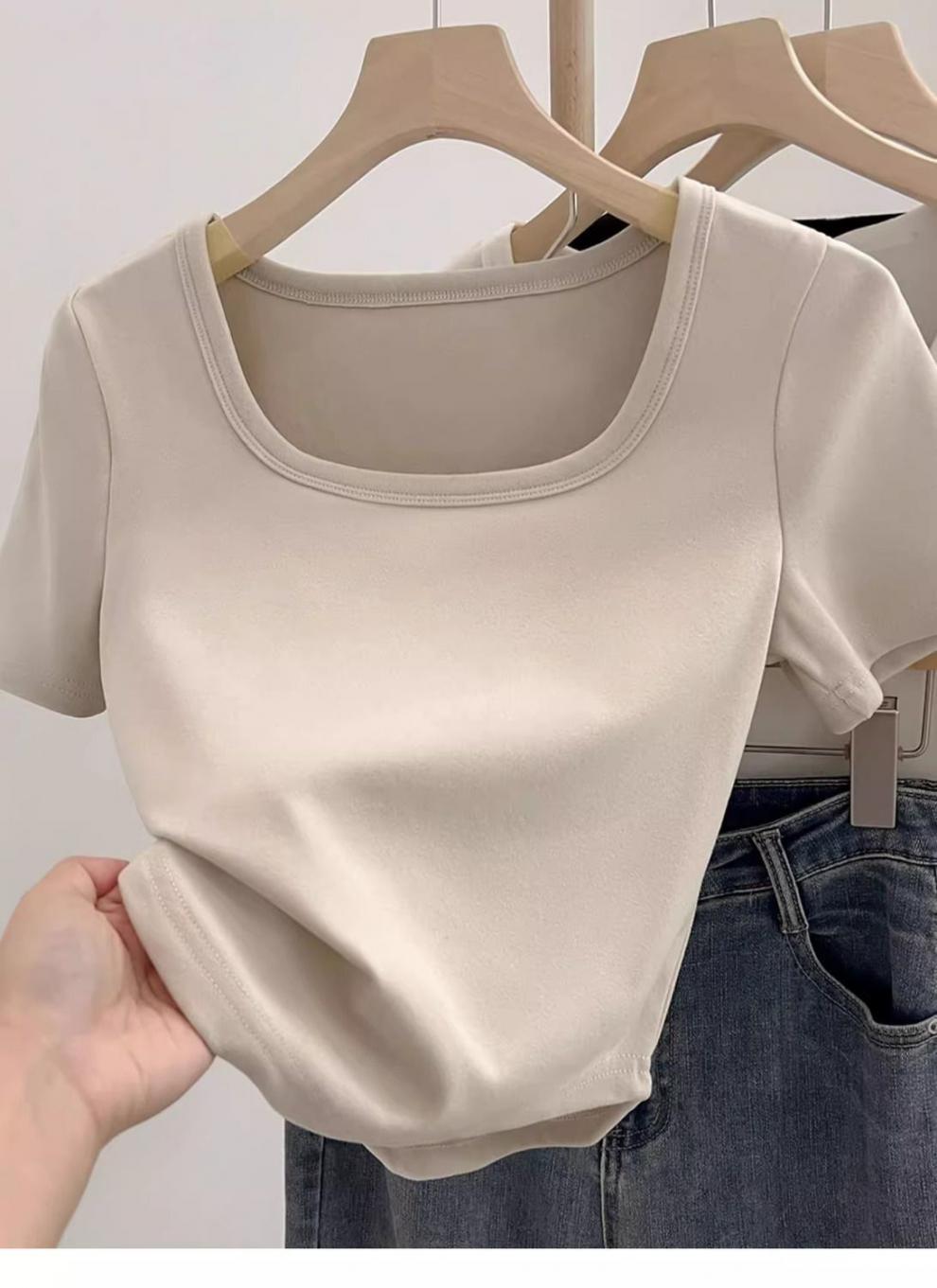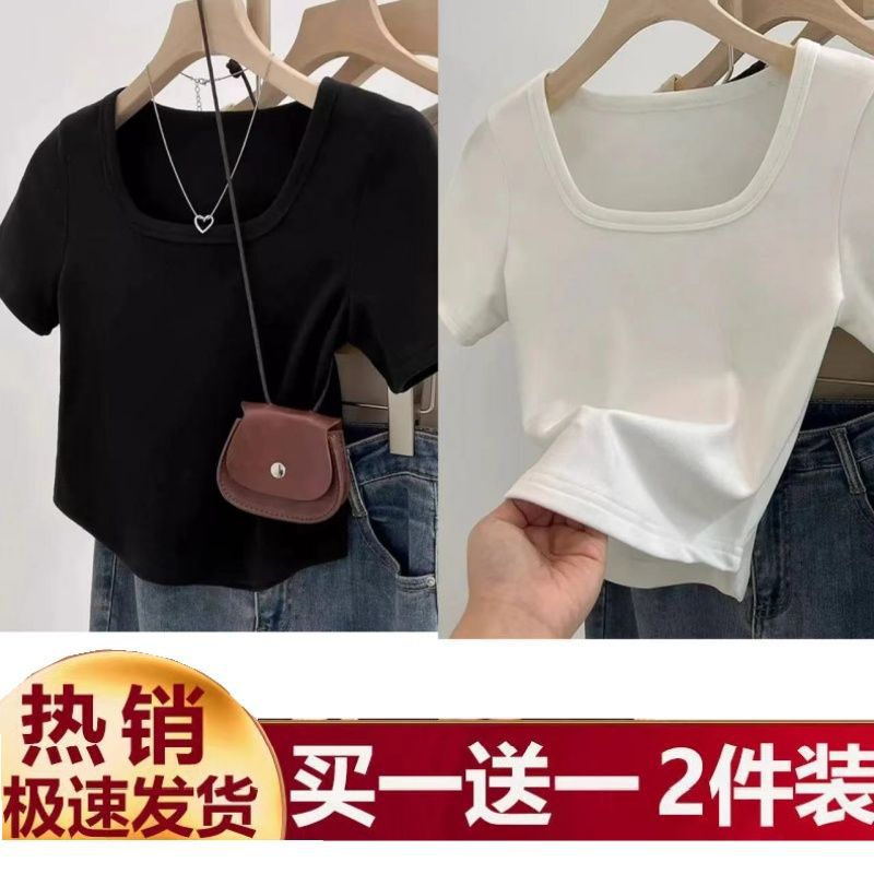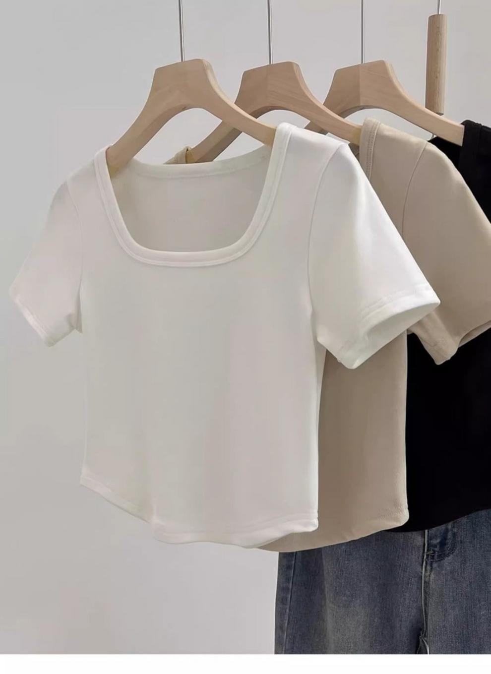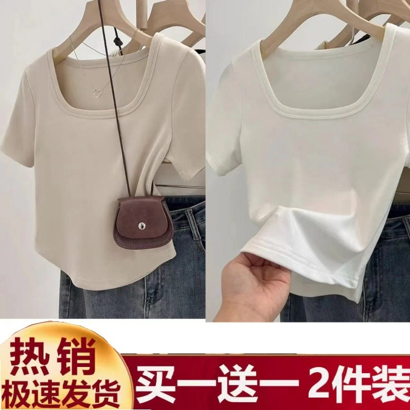 싱글/투피스 숄더 스퀘어 칼라 반팔 셔츠 여성용 여름 슬림핏 올매치 커브드 헴 스파이스 걸 병 옷스토어 가기