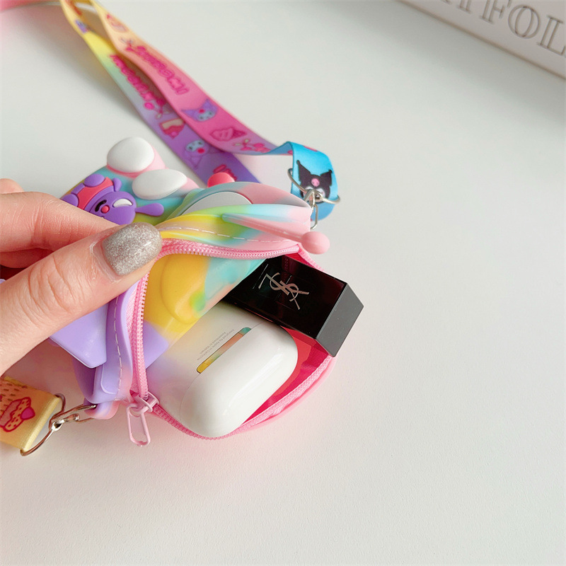 2024 폭발성 Kulomi 어린이 배낭 실리콘 동전 지갑 학생 가방 소녀의 심장 크로스 바디 가방 만화 저장 가방