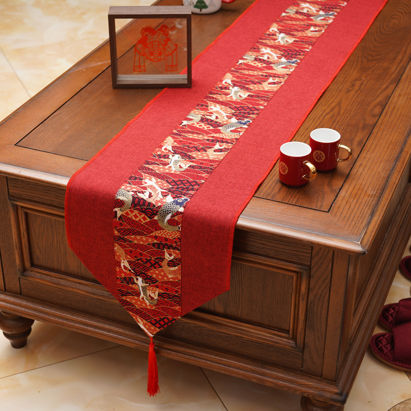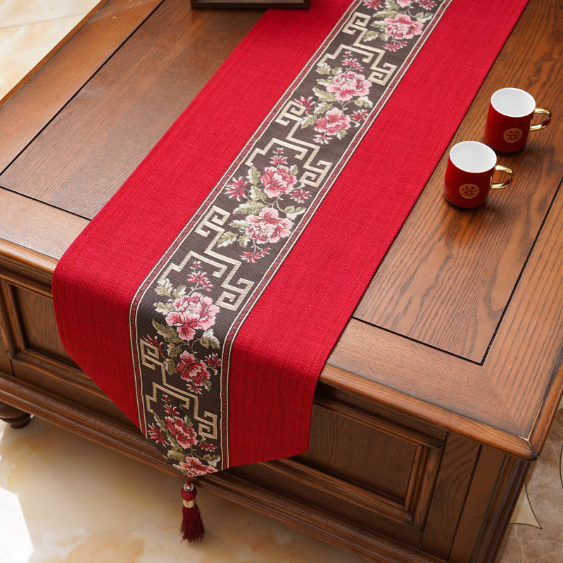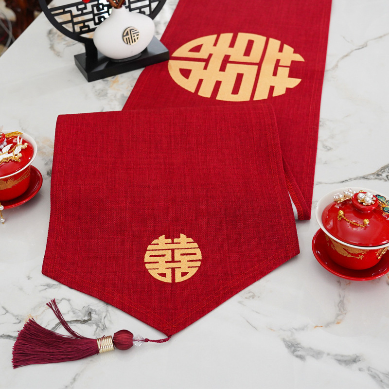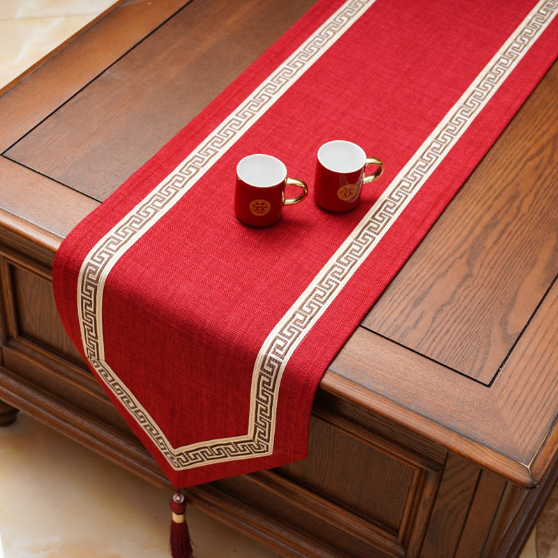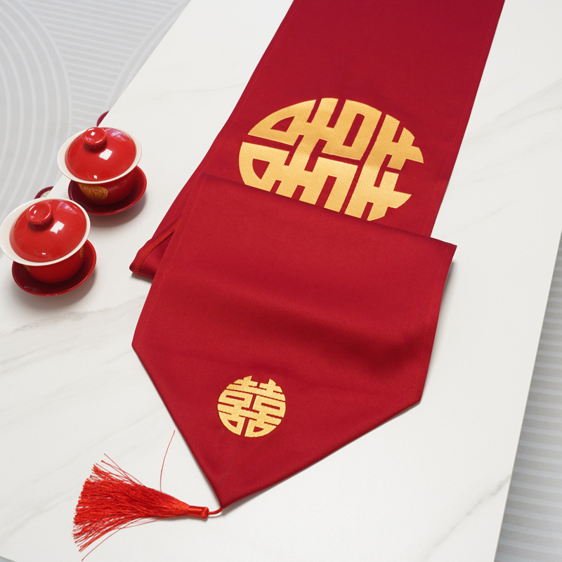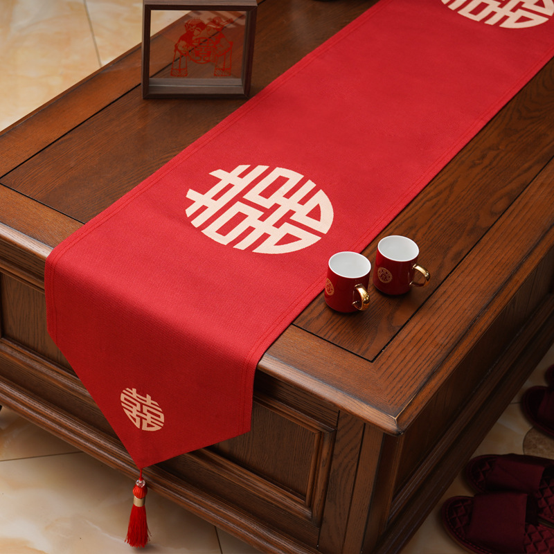 빨간색 웨딩 자수 테이블 플래그, 커피 테이블 천, 식탁보, 약혼 축하, 결혼식 TV 캐비닛 긴 커버 타월