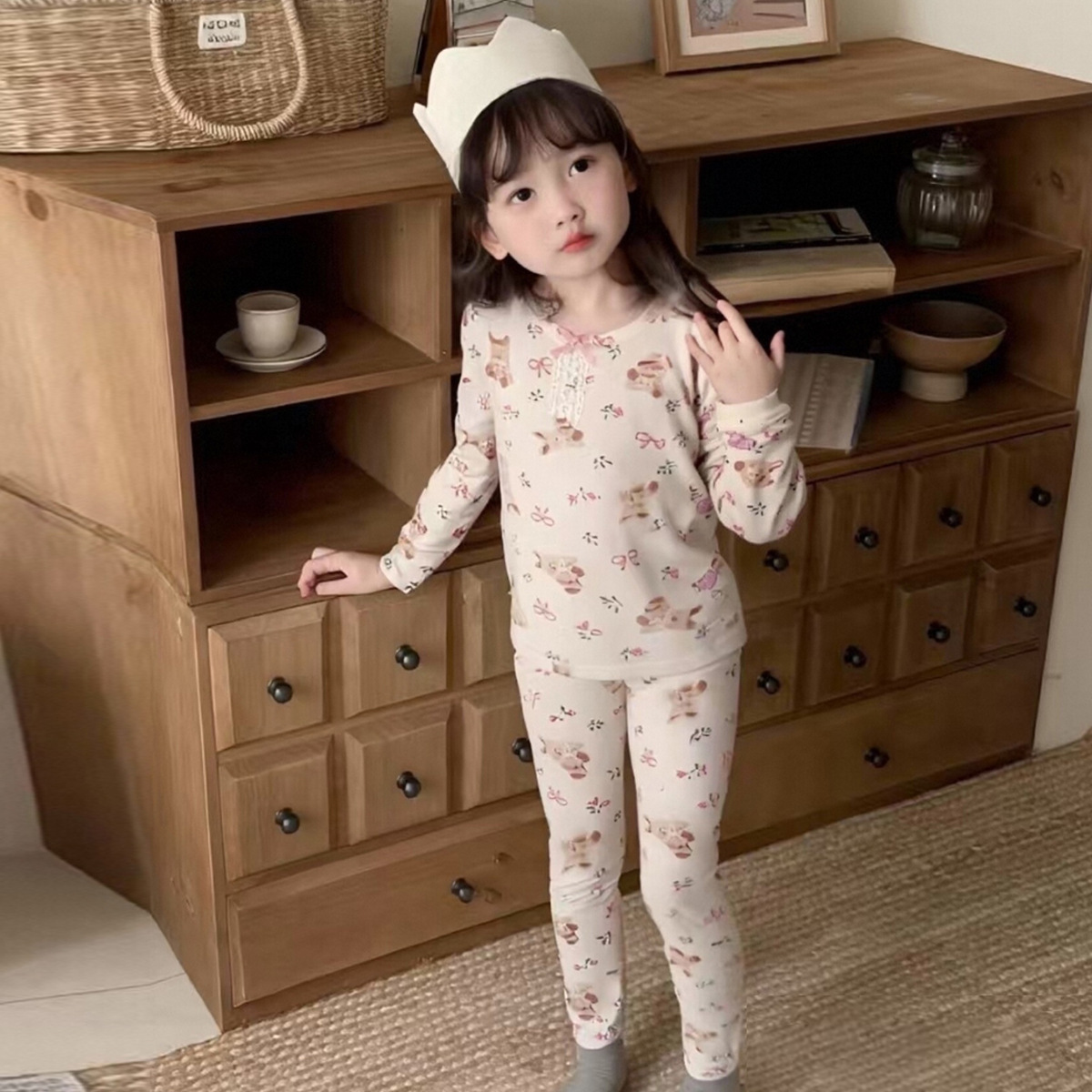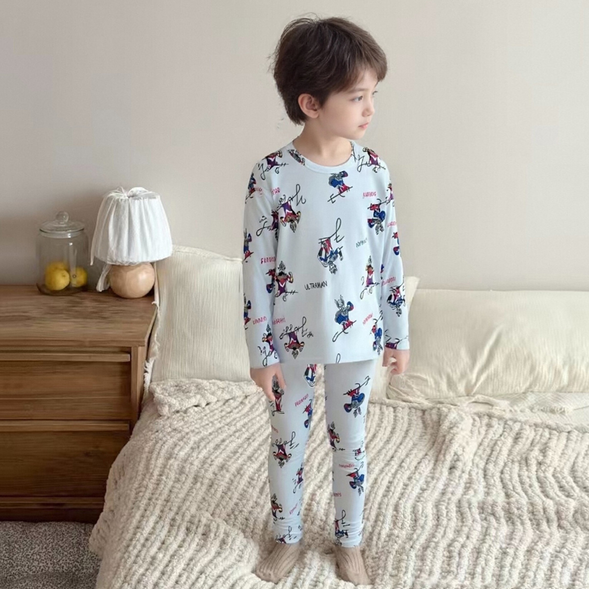 어린이 가을 옷과 바지 세트 남성 뼈 두 조각 잠옷 소녀 남자 가을 면 어린이 홈 의류 속옷 세트
