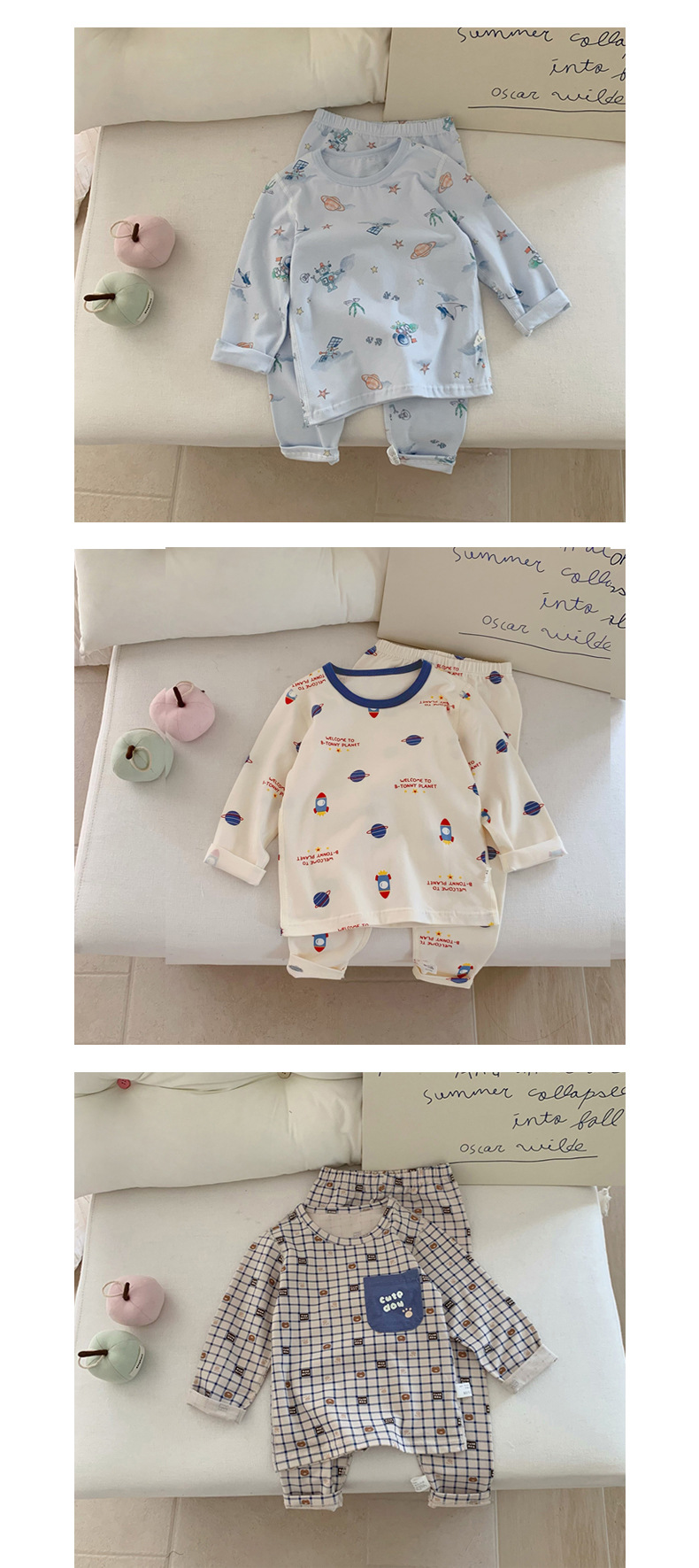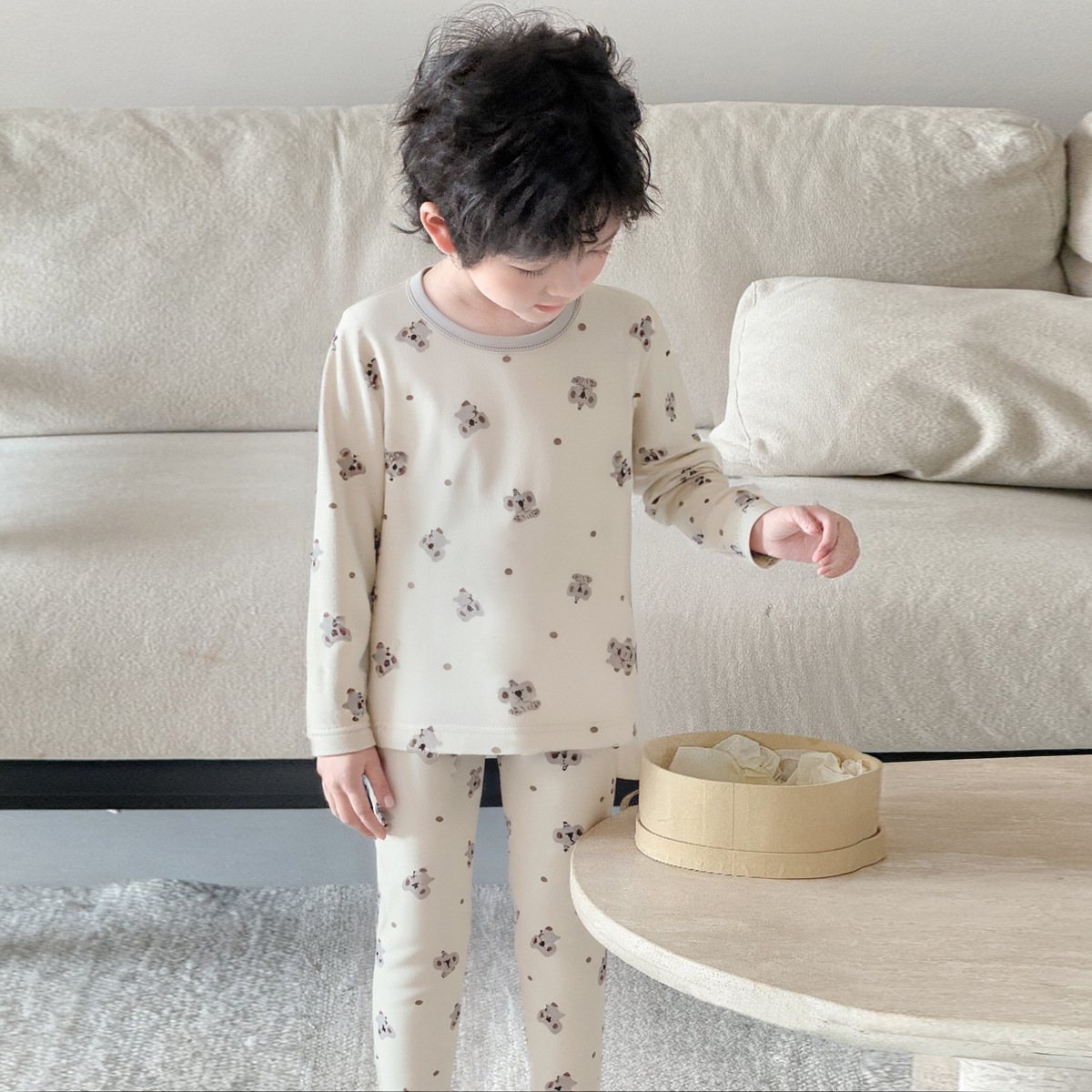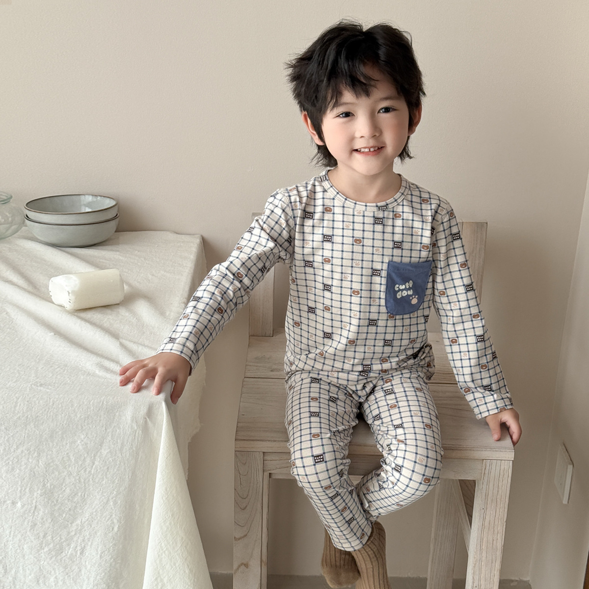 어린이 가을 옷과 바지 세트 남성 뼈 두 조각 잠옷 소녀 남자 가을 면 어린이 홈 의류 속옷 세트스토어 가기