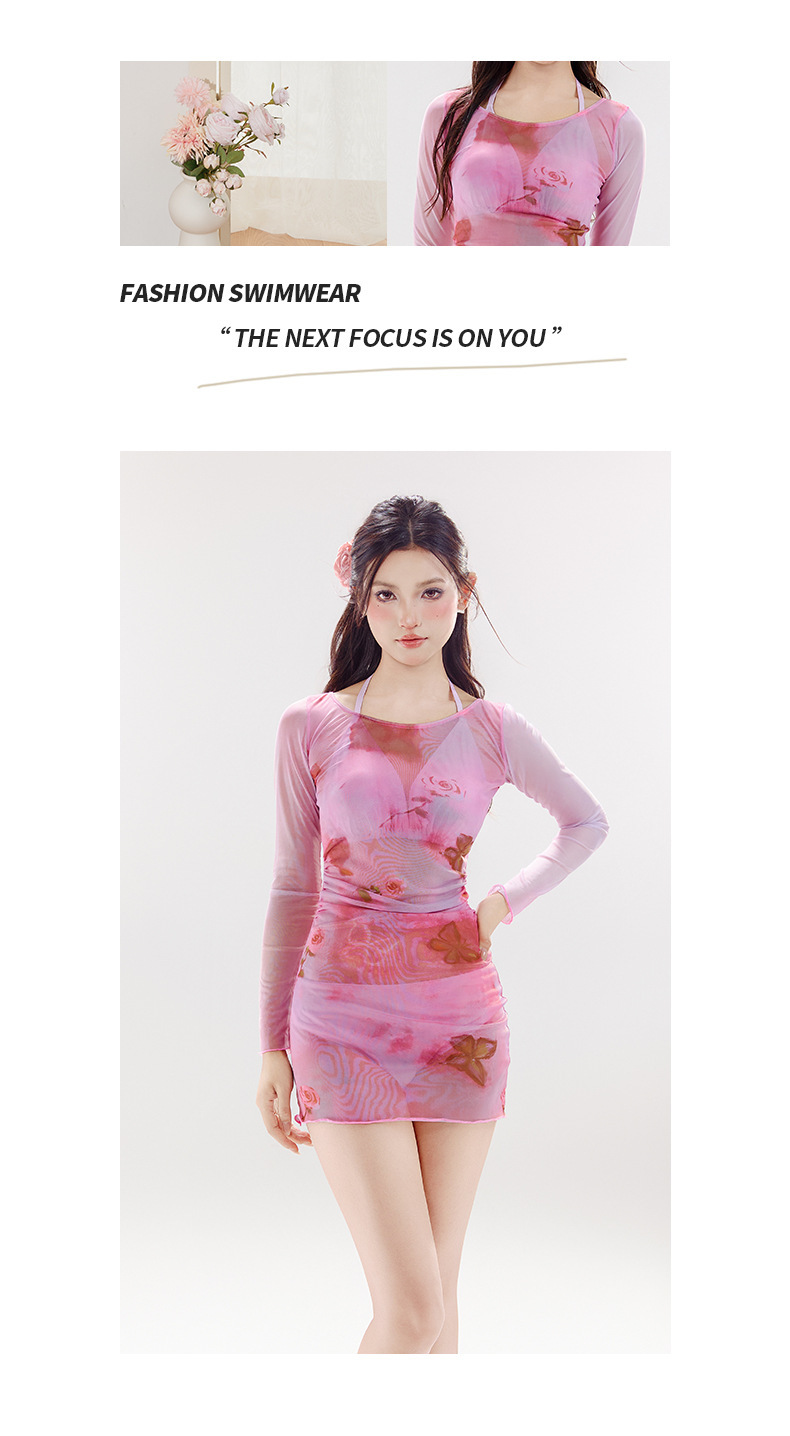 새로운 수영복 여성의 섹시한 슬림 한 고기로 덮인 목 비키니 달콤한 시원한 긴 소매 선 스크린 크로스 보더