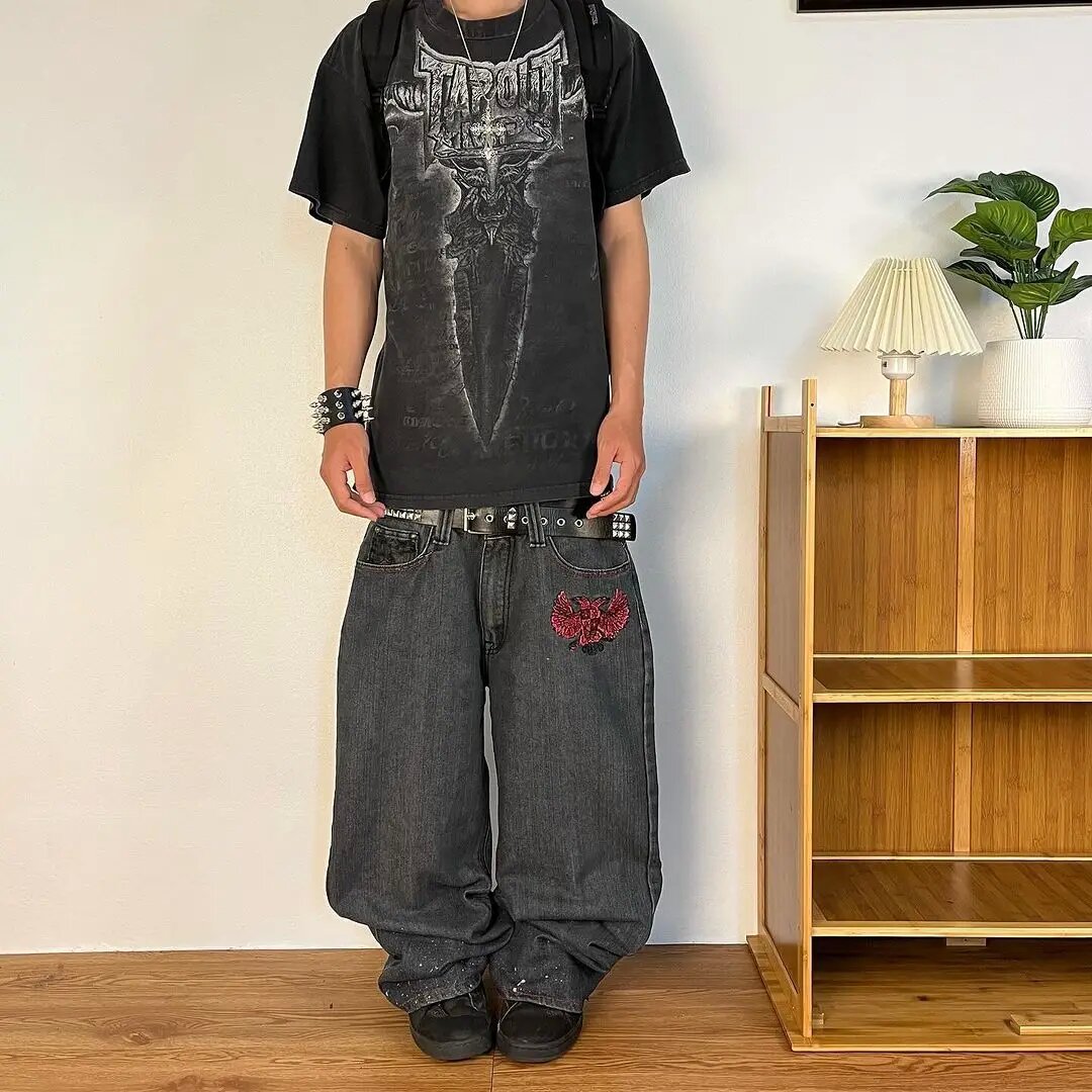 국경 간 전자 상거래 Y2k 패션 캐주얼 청바지 바지 하 스타일 거리 데님 넓은 다리 바지 남성스토어 가기
