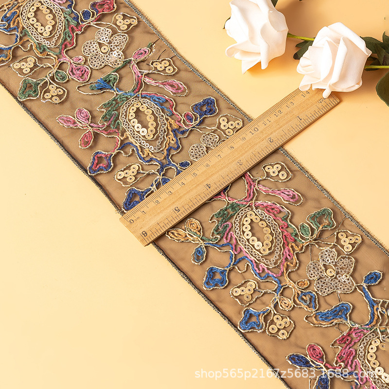 새로운 민족 자수 자동차 뼈 장식 레이스 빈티지 레이스 메쉬 바닥 황금 가닥 의류 액세서리스토어 가기