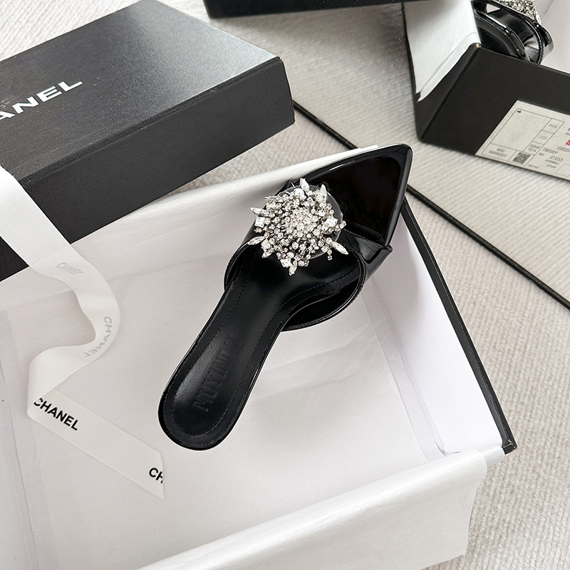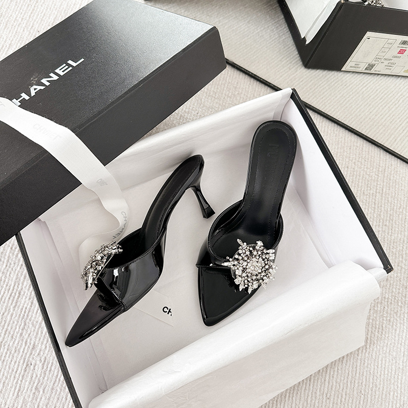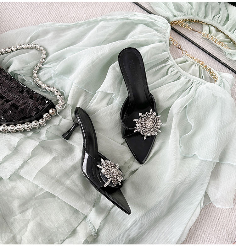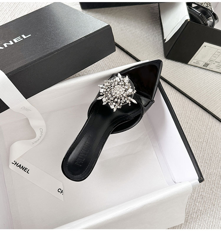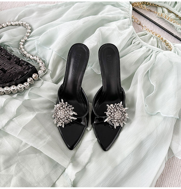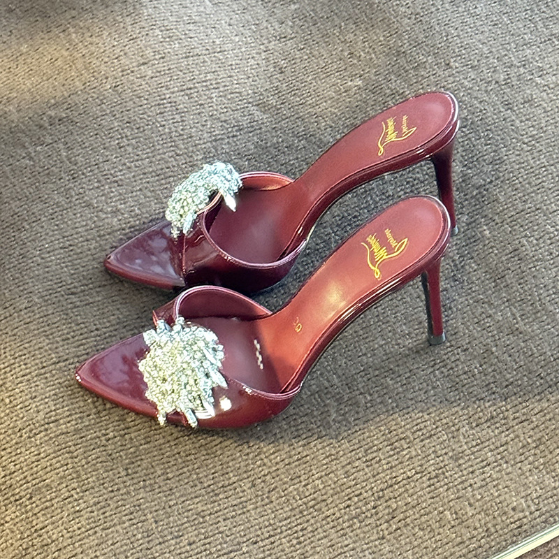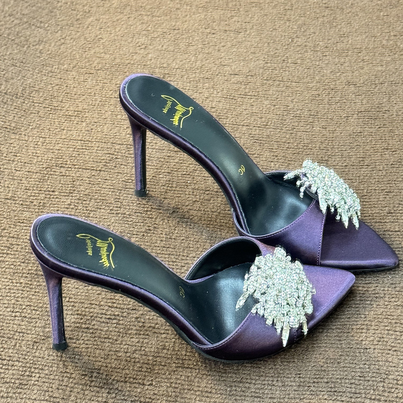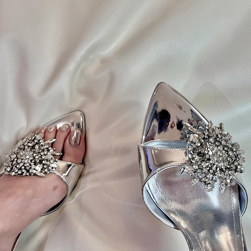 여성을 위한 뾰족한 하이힐 2025년 여름 신상품 라인스톤 프렌치 스타일로 발이 피곤하지 않고 아름답고 고급스러운 하이힐 샌들스토어 가기