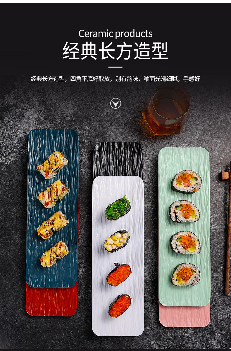 일본식 스시 플레이트 크리 에이 티브 스톤 패턴 롱 플레이트 가정용 플라스틱 플랫 플레이트 자루 플레이트 디저트 케이크 플레이트 살라 플레이트스토어 가기