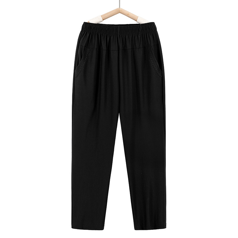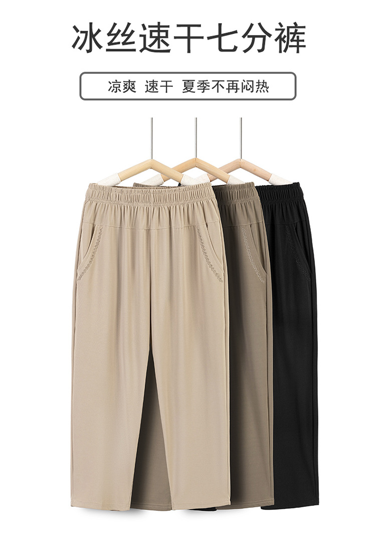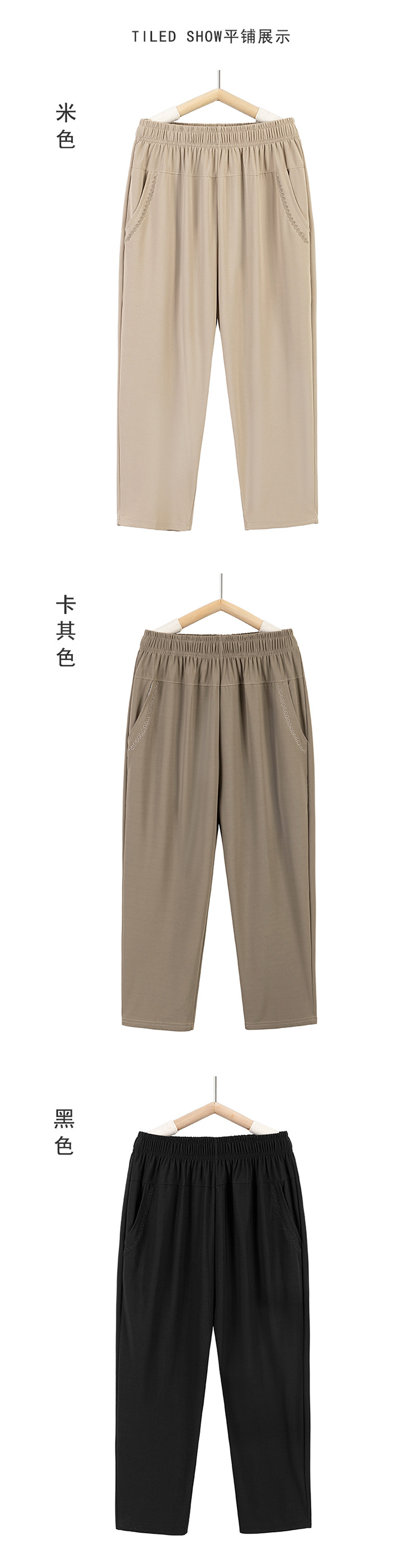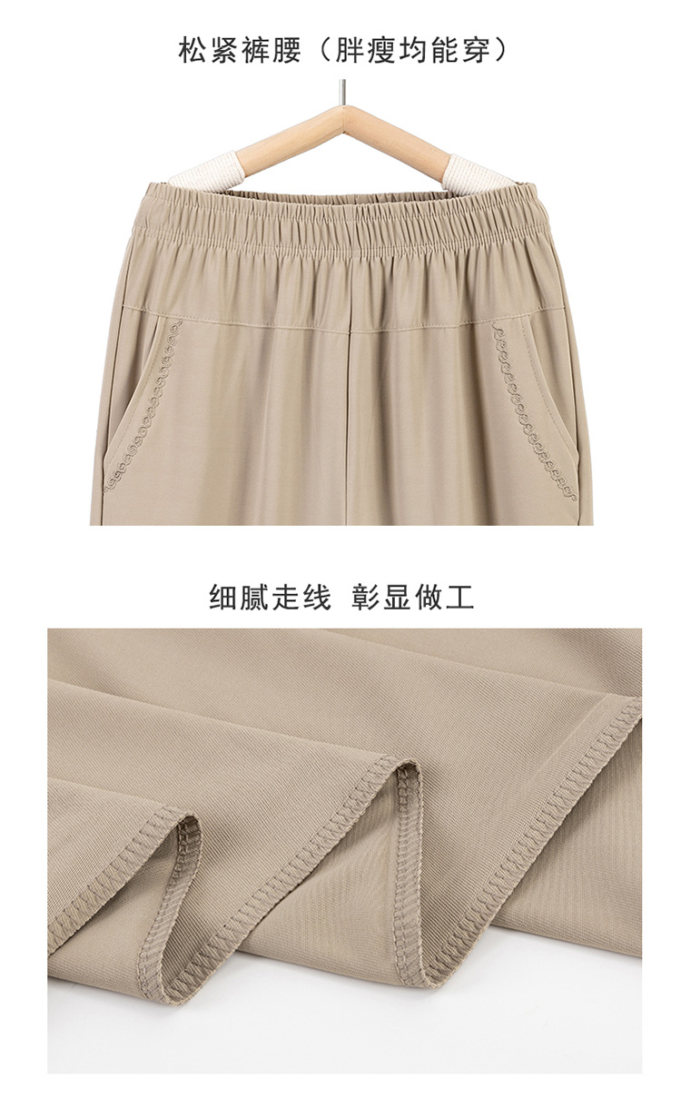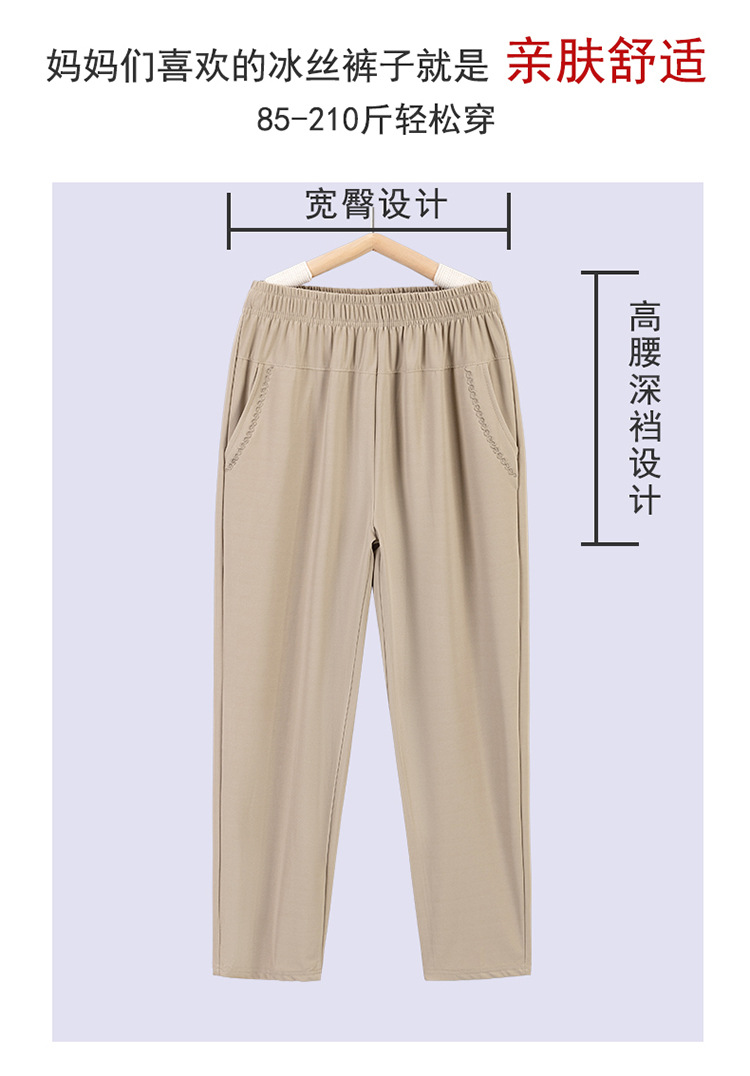 중년 및 노인 여성 바지 여름 카프리 바지 얇은 느슨한 플러스 사이즈 할머니의 느슨한 높은 허리 엄마의 자른 바지