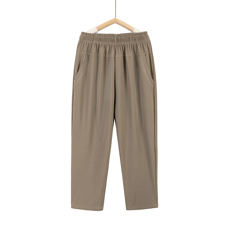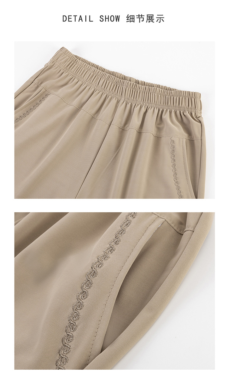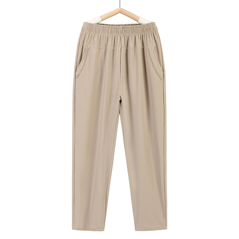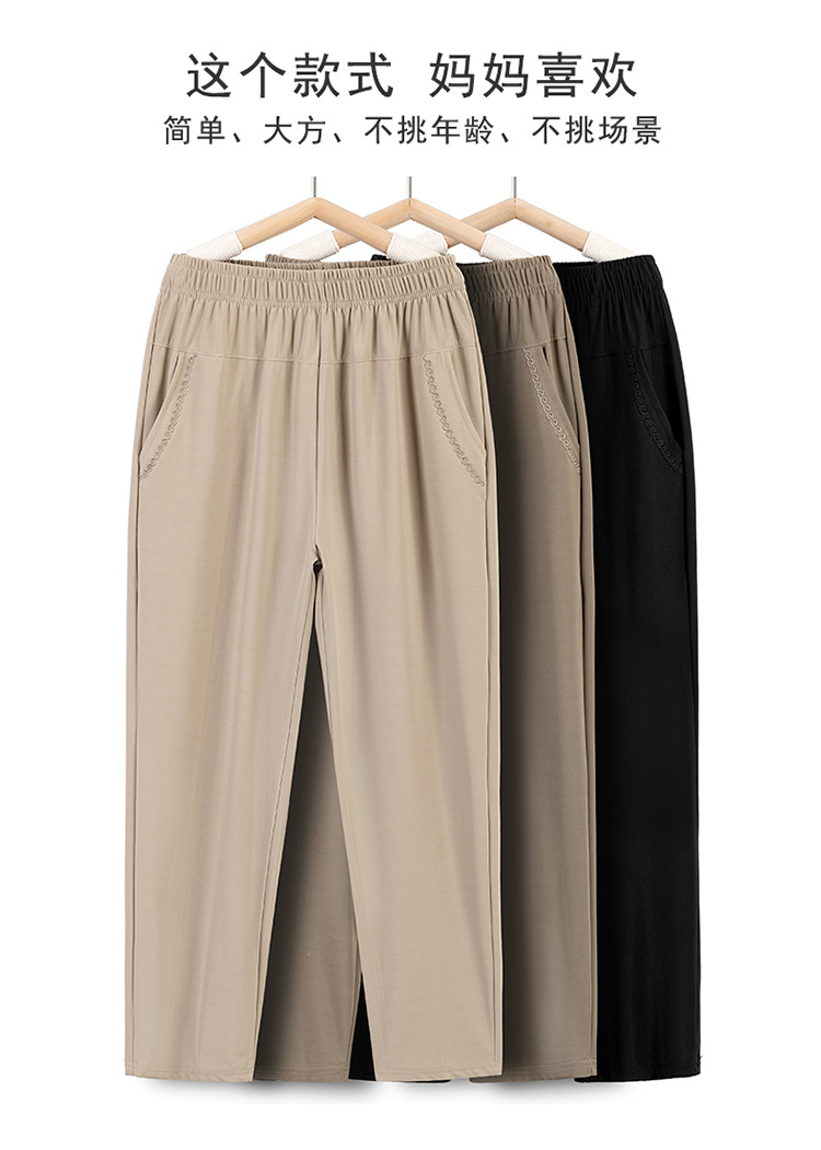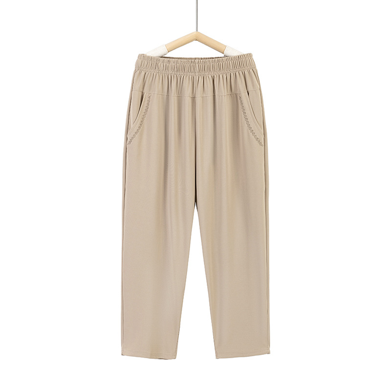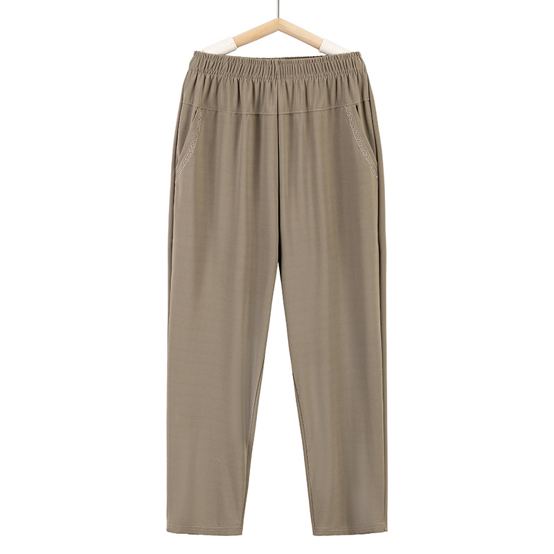 중년 및 노인 여성 바지 여름 카프리 바지 얇은 느슨한 플러스 사이즈 할머니의 느슨한 높은 허리 엄마의 자른 바지