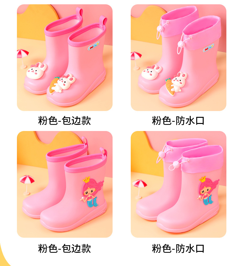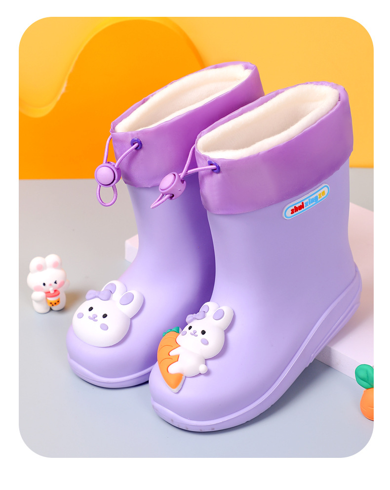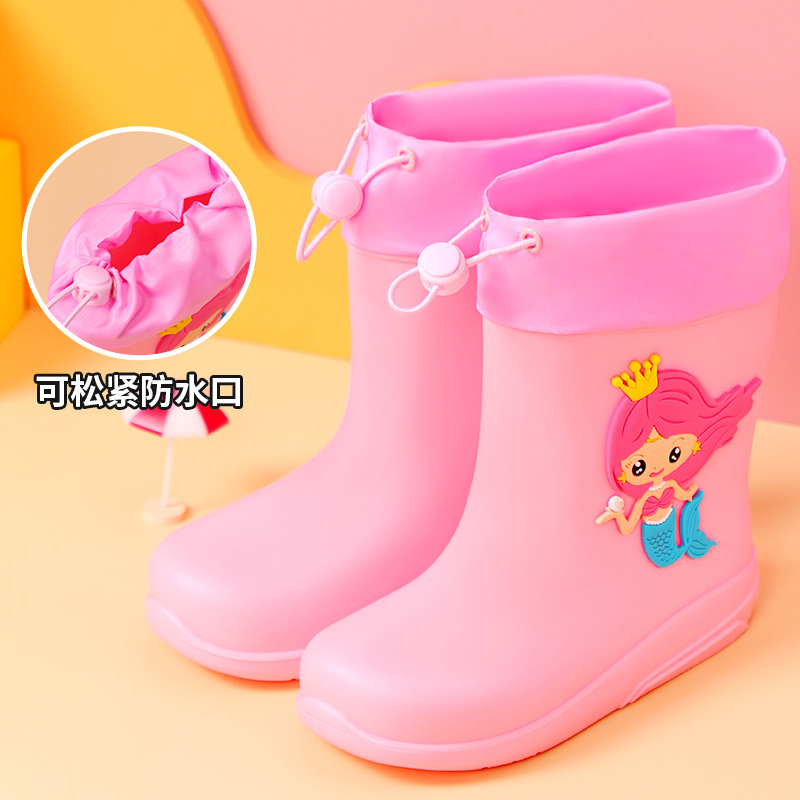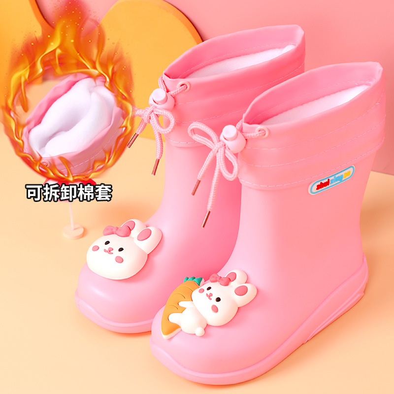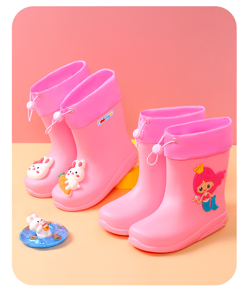 만화 어린이 장화 2-9 세 기모 따뜻한 방수 미끄럼 방지 소녀의 장화 미드 튜브 소년 수상 고무 신발