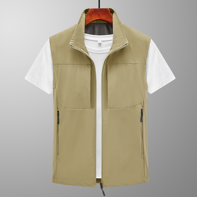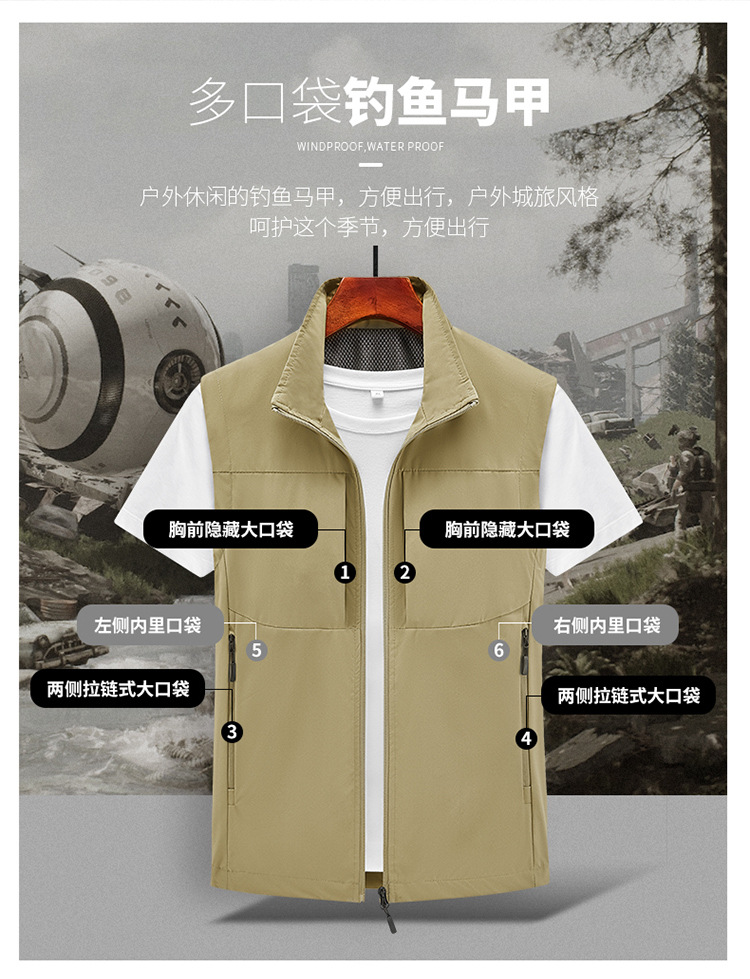중년 아빠를위한 남자 조끼 봄과 가을 얇은 멀티 포켓 조끼 야외 등산 느슨한 조끼 후드 재킷