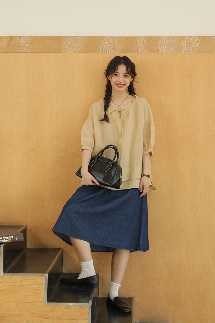 여성 치마 2024 여름 새로운 예술적 모리 얇은 허리 멀티 브레스트 디자인 센스 데님 A 라인 스커트스토어 가기