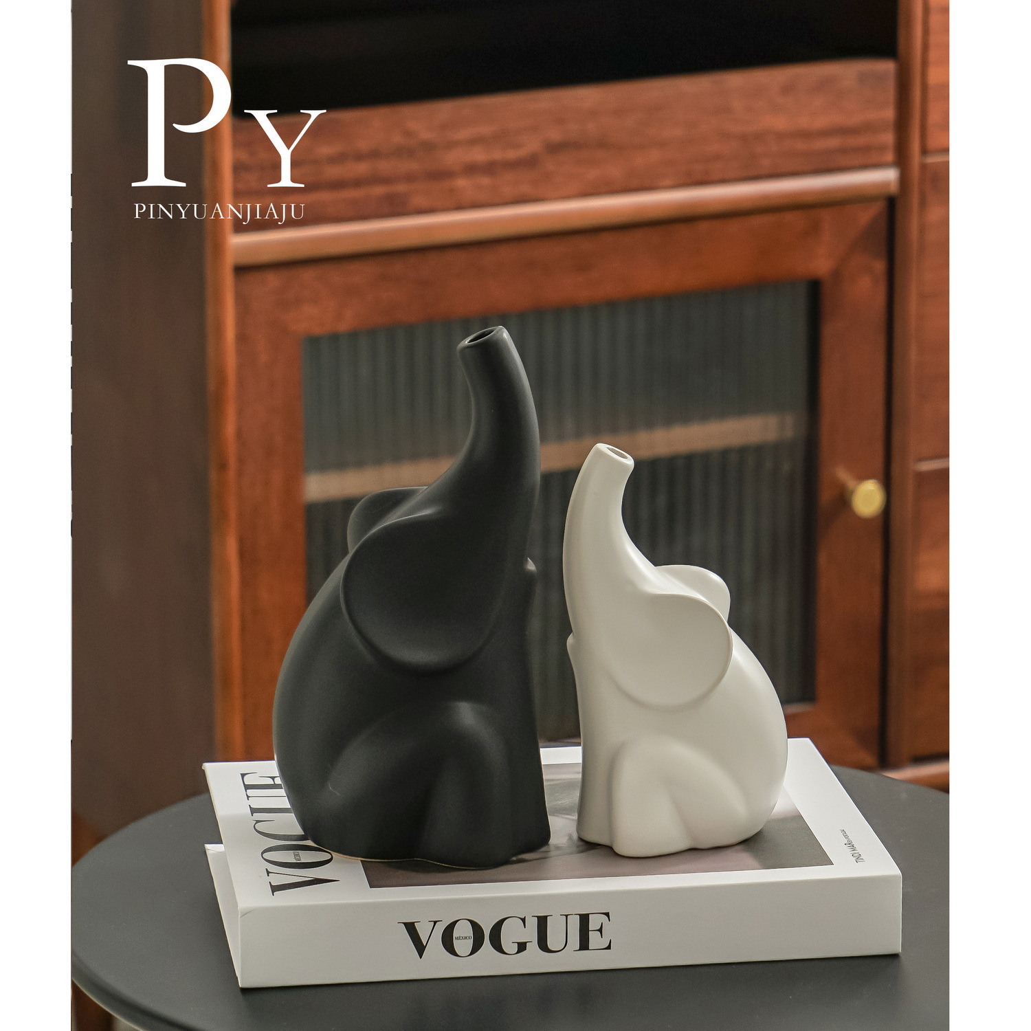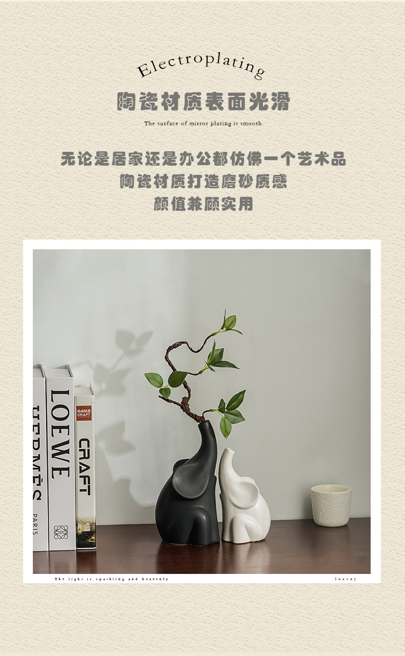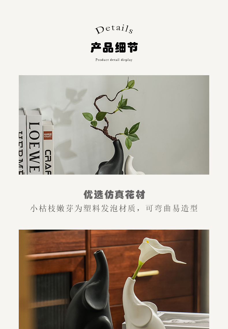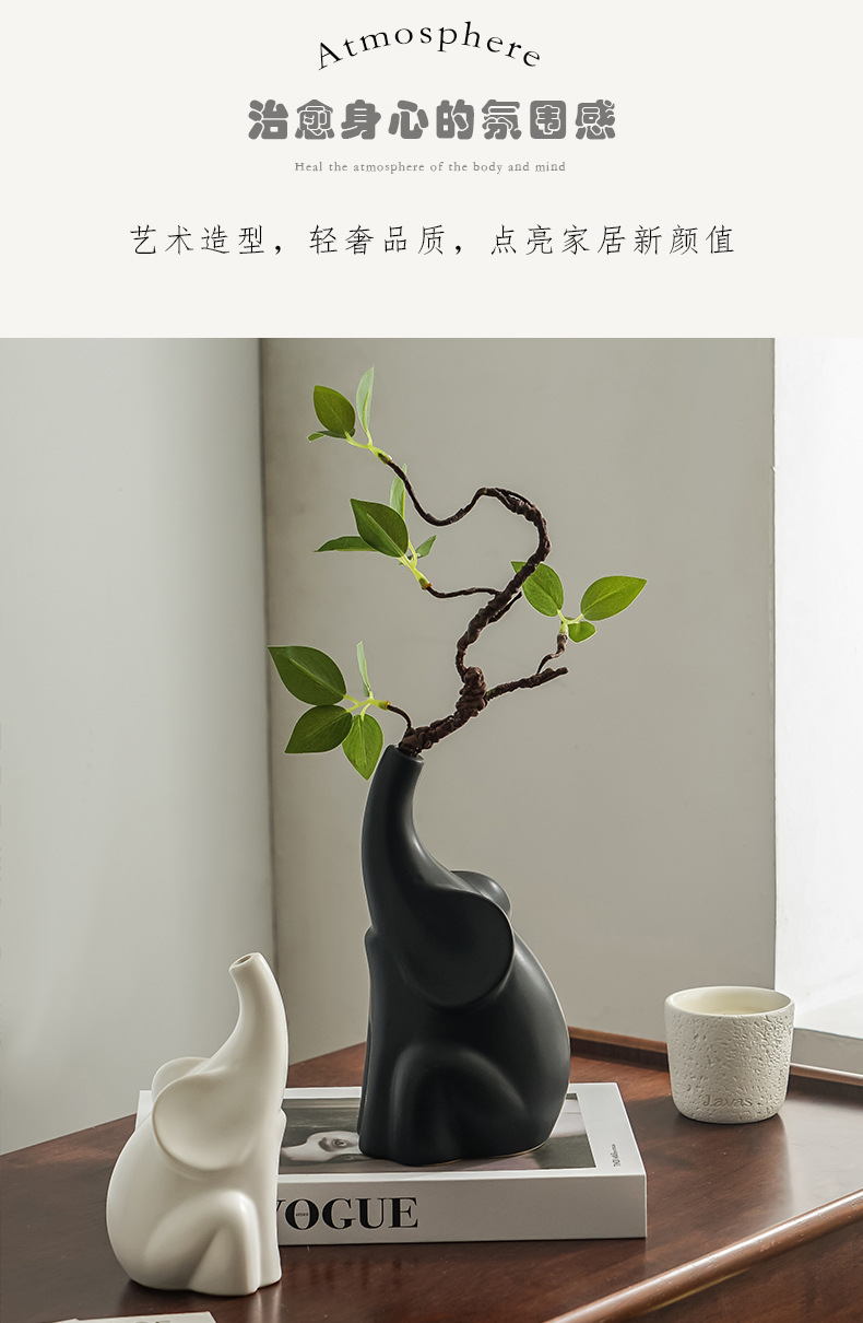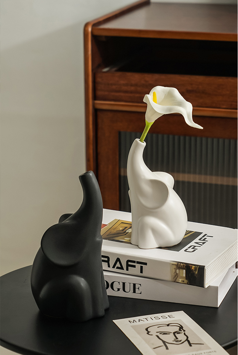 북유럽 코끼리 도자기 꽃병, 고급스러운 거실 현관 침실 TV장식장 와비사비 스타일 장식품스토어 가기