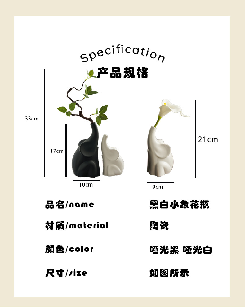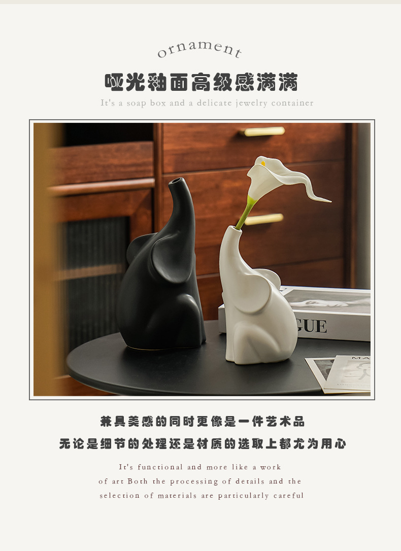북유럽 코끼리 도자기 꽃병, 고급스러운 거실 현관 침실 TV장식장 와비사비 스타일 장식품