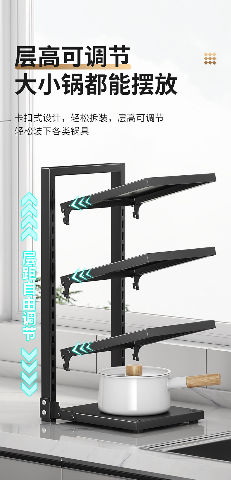 냄비 수납 선반, 캐비닛 내부 레이어드 냄비 선반, 주방 수납 선반, 다층 가정용 다기능 싱크대 아래 선반