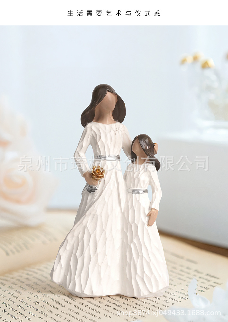 국경 간 신제품 핫셀러 패밀리 시리즈 오피스 입구 홈 장식품 모조 목판 어머니와 딸 로즈 수지 장식품스토어 가기