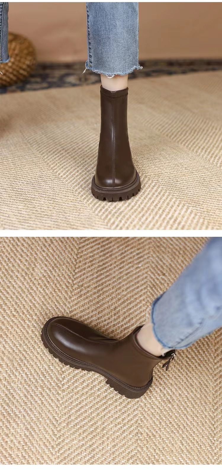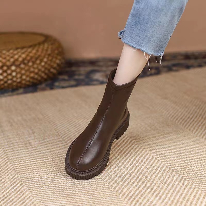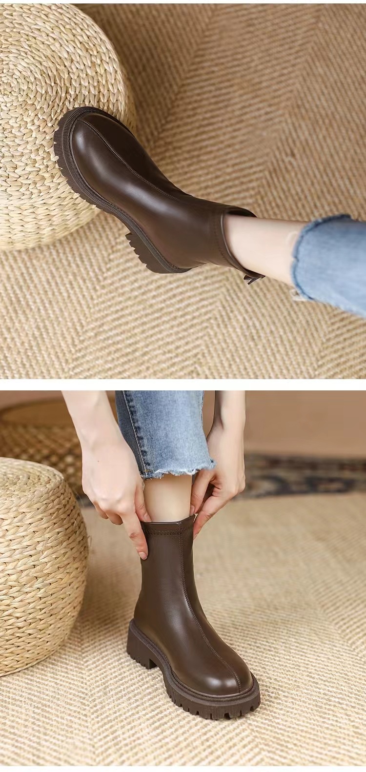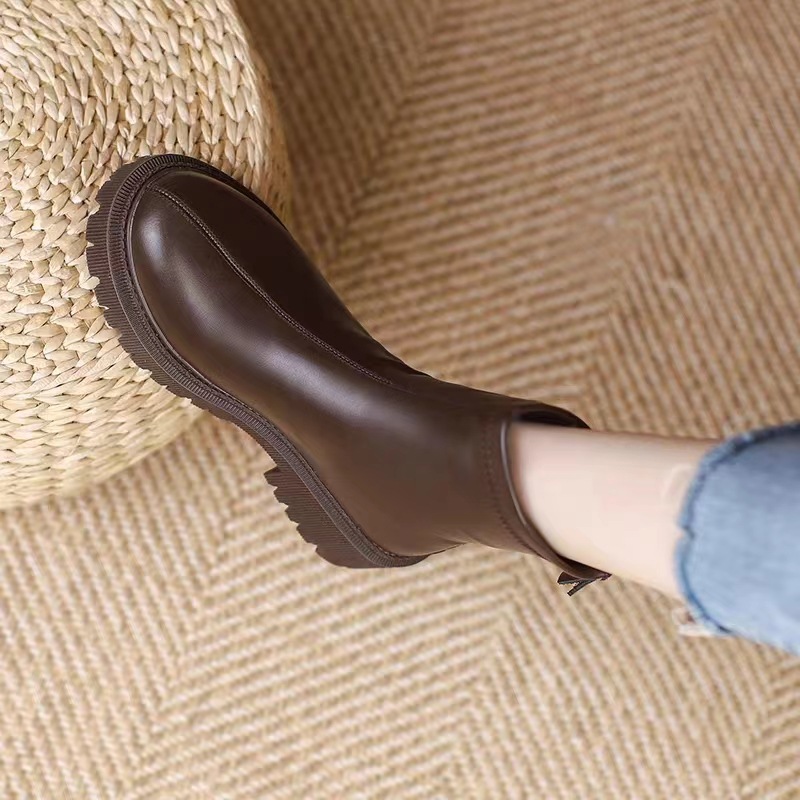 부드러운 가죽 마틴 부츠 여성 짧은 부츠 부츠 2024 새로운 가을과 겨울 인터넷 뜨거운 영국 스타일 두꺼운 바닥 겨울 기모스토어 가기