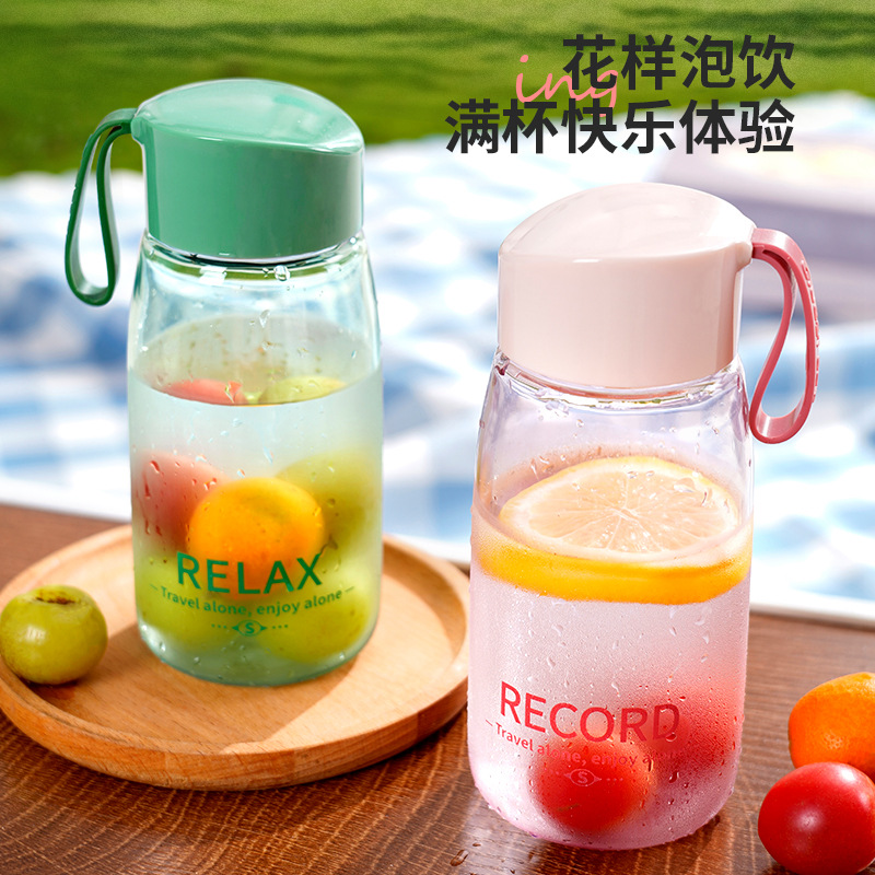 소녀와 학생을위한 귀여운 핸디 컵 간단한 휴대용 컵 여름 투명한 플라스틱 워터 컵 스페이스 컵 누출 방지