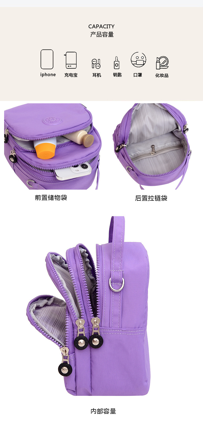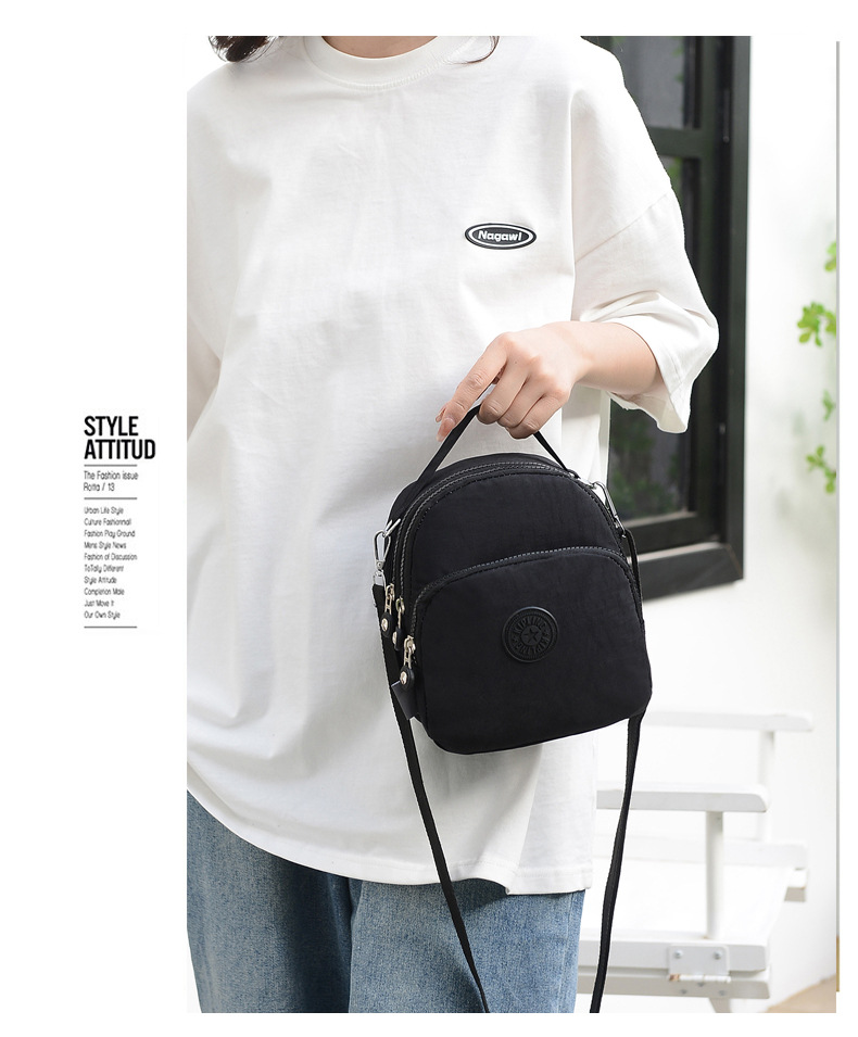 새로운 캐주얼 어깨 가방 씻은 천 솔리드 컬러 멀티 지퍼 편리한 야외 핸드백 엄마 작은 원숭이 크로스 바디 백