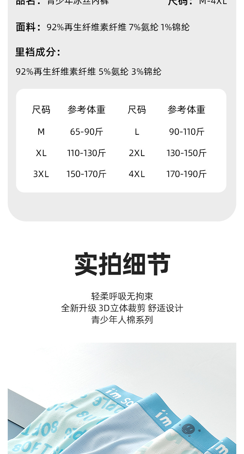 [도매 맞춤형] 청소년 속옷 클래스 A 어린이 · 소년 발달 여름 얇은 얼음 실크 빠른 건조 반바지