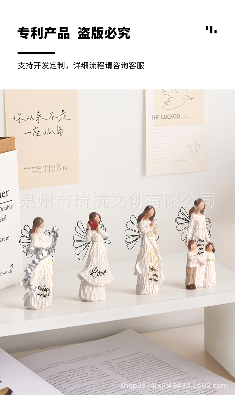 국경을 넘나 드는 새 가족 시리즈 자매기도 자매, 심장 모조 목판 데스크탑 입구 수지 공예 장식품