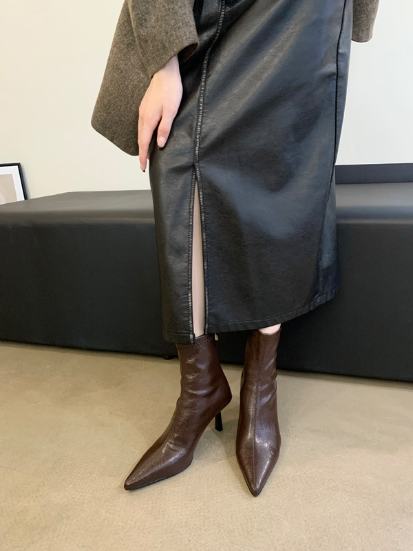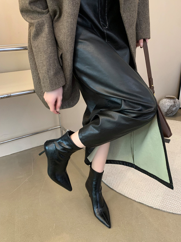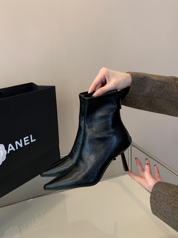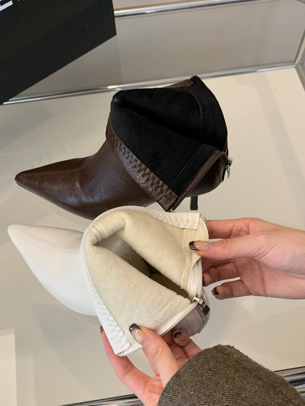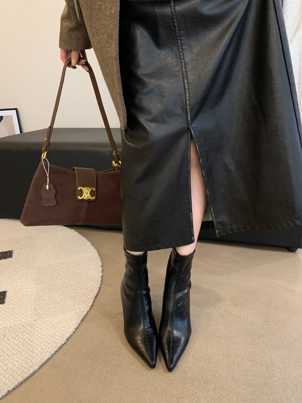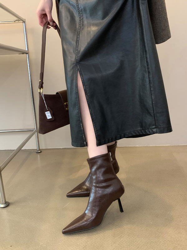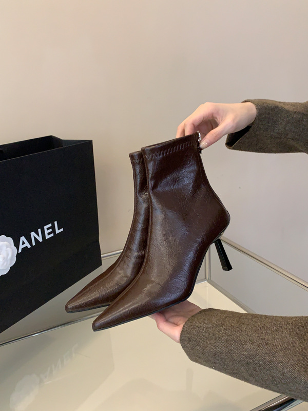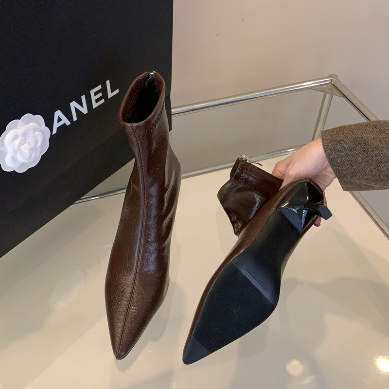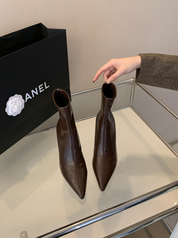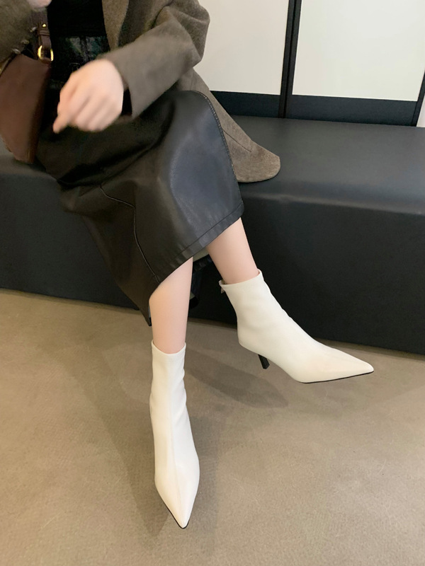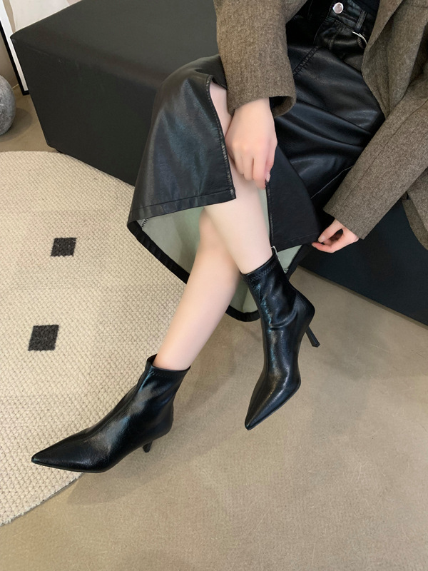 여성용 뾰족코 숏부츠 2025 가을 겨울 신상 부츠 숏부츠 슬림 여성 부츠 얇은 굽 하이힐 부츠 누드 부츠