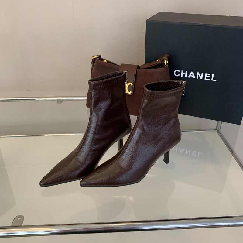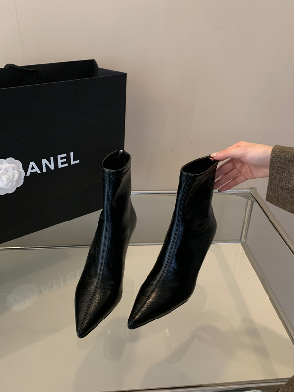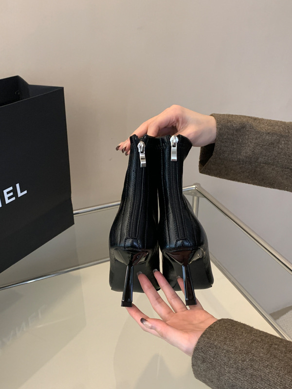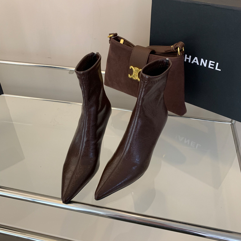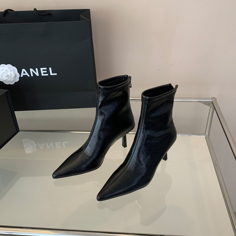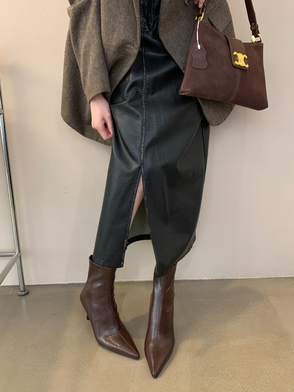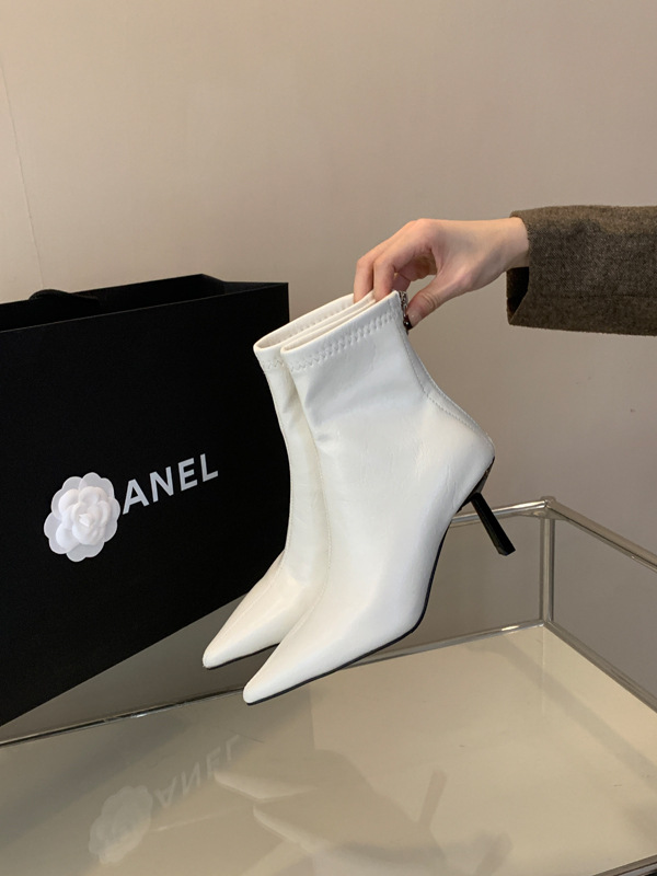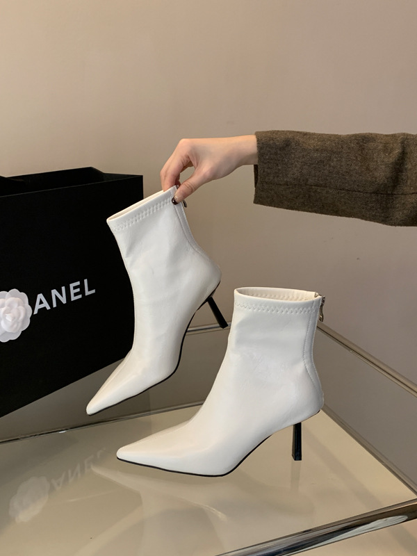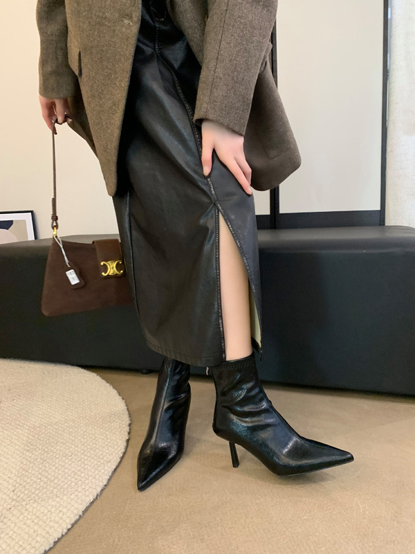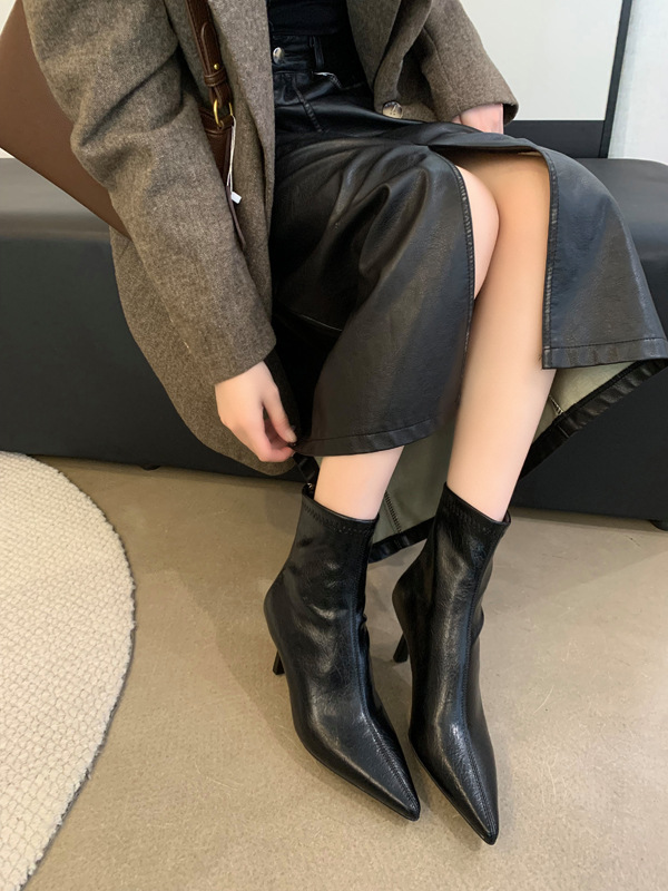 여성용 뾰족코 숏부츠 2025 가을 겨울 신상 부츠 숏부츠 슬림 여성 부츠 얇은 굽 하이힐 부츠 누드 부츠
