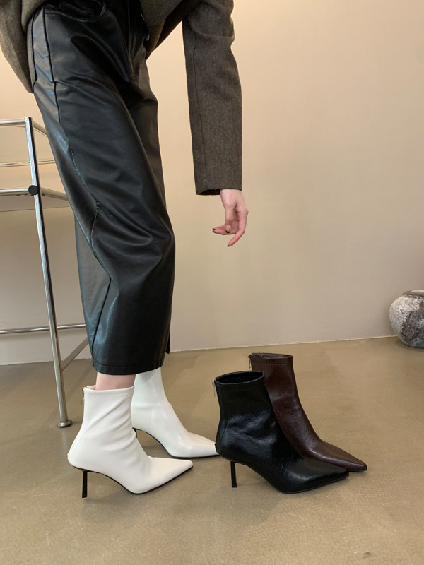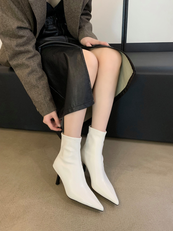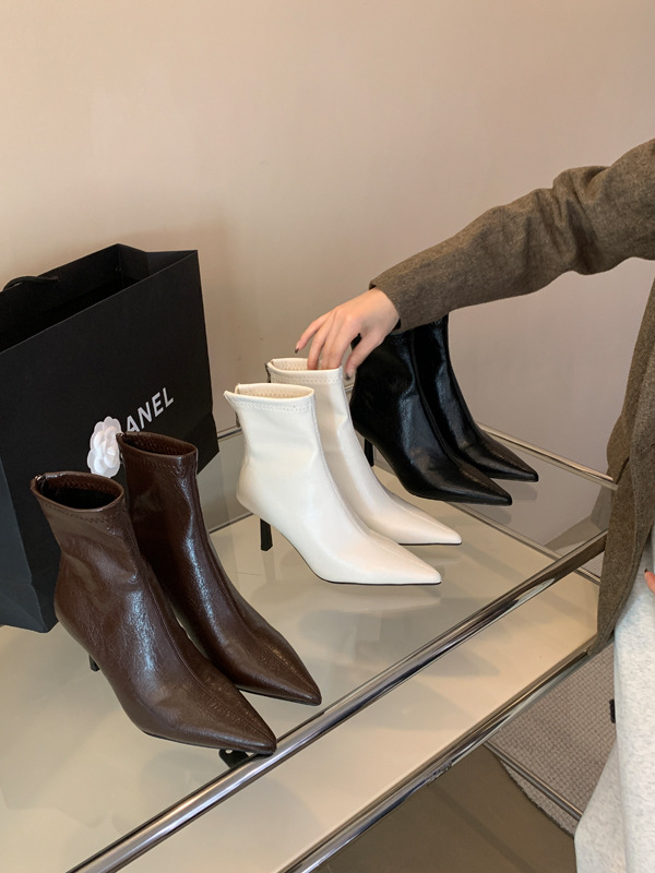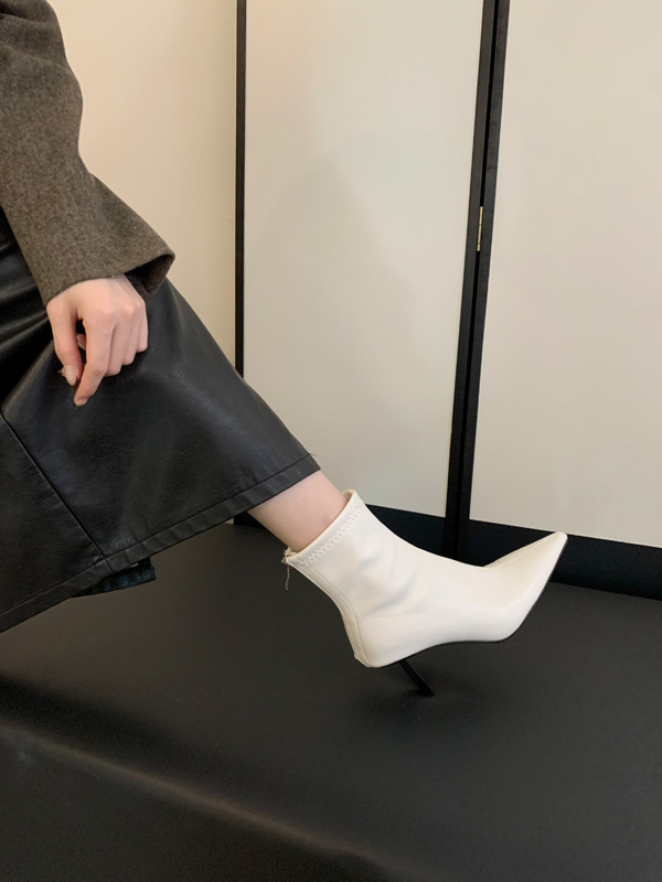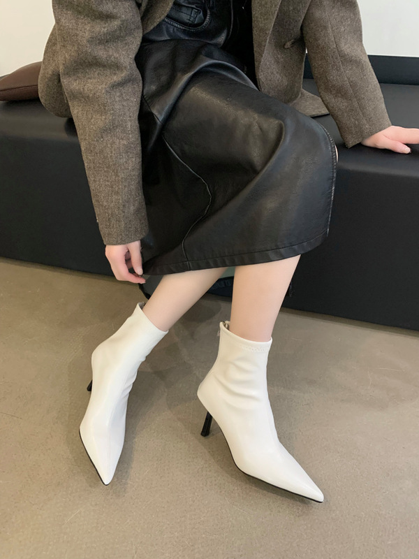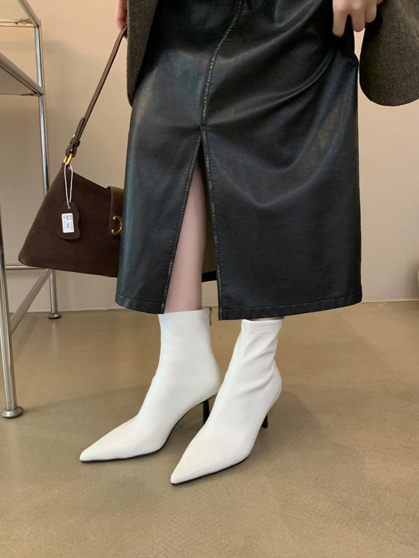 여성용 뾰족코 숏부츠 2025 가을 겨울 신상 부츠 숏부츠 슬림 여성 부츠 얇은 굽 하이힐 부츠 누드 부츠스토어 가기