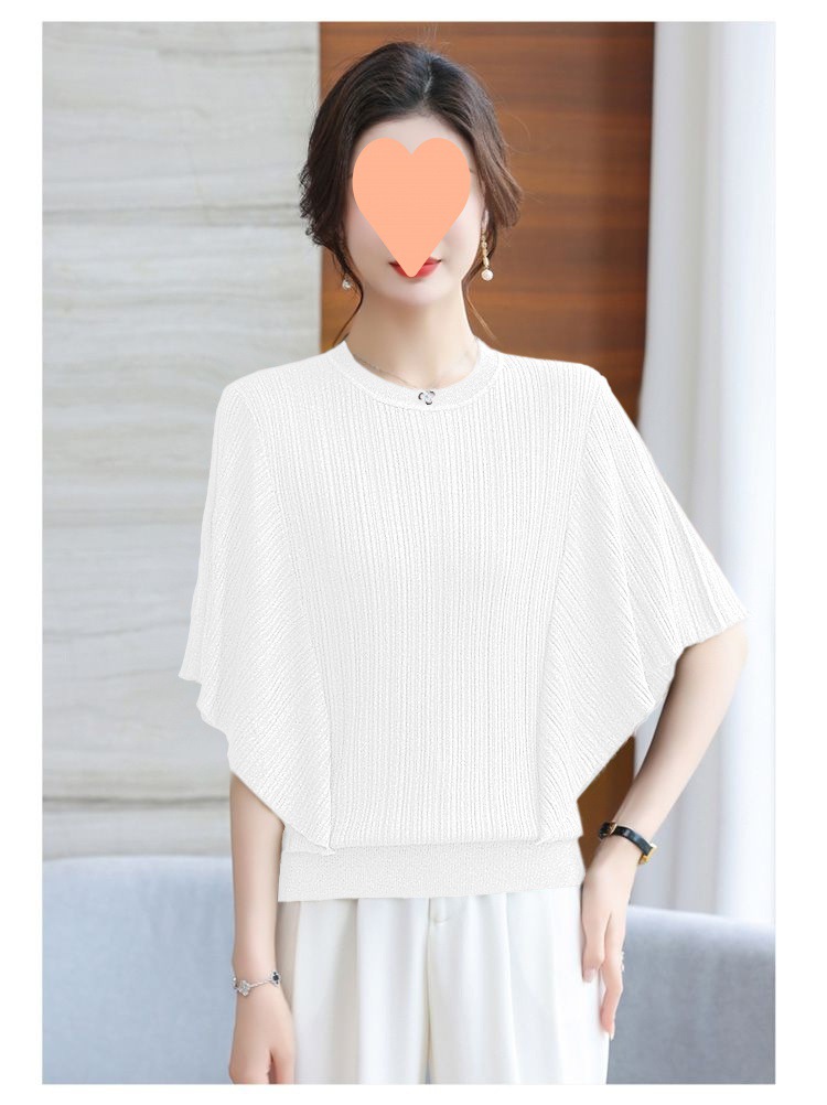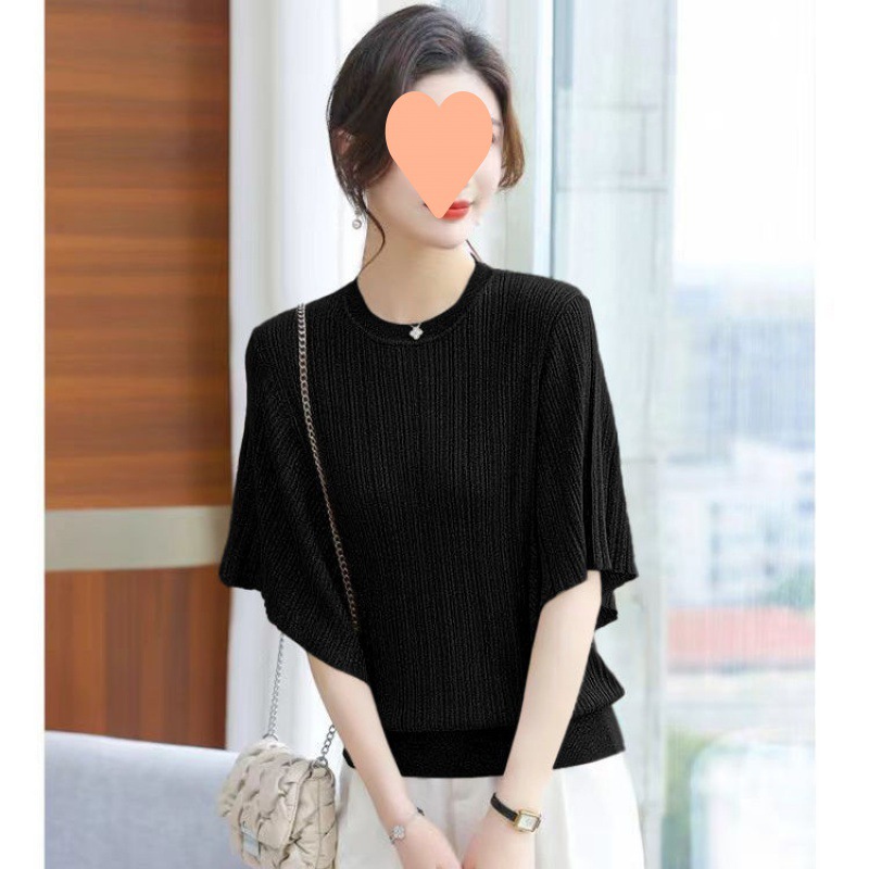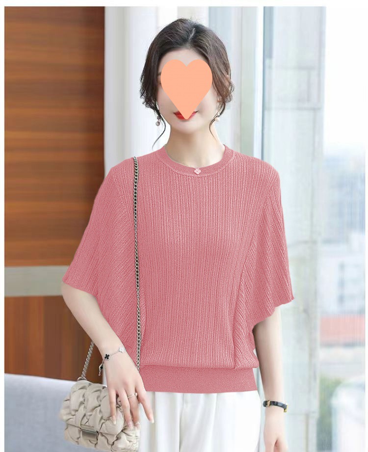 어머니의 얼음 실크 니트 배트 모빌 셔츠 여성의 2024 봄과 여름 얇은 여름 플러스 사이즈 외국식 탑스토어 가기