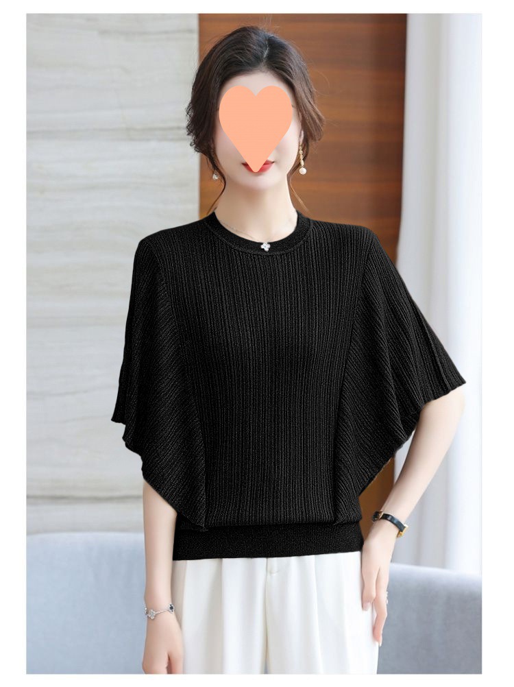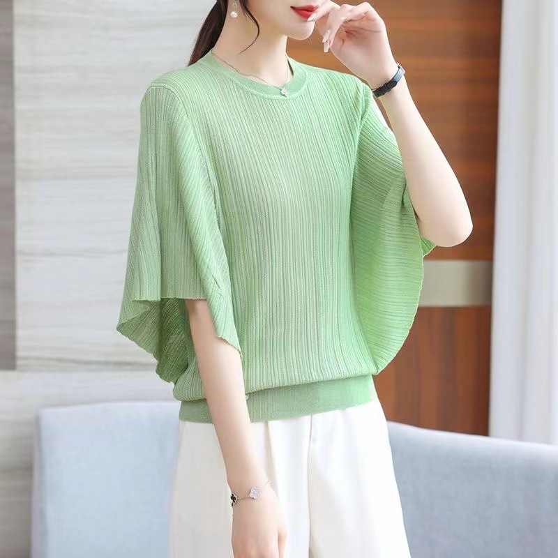 어머니의 얼음 실크 니트 배트 모빌 셔츠 여성의 2024 봄과 여름 얇은 여름 플러스 사이즈 외국식 탑