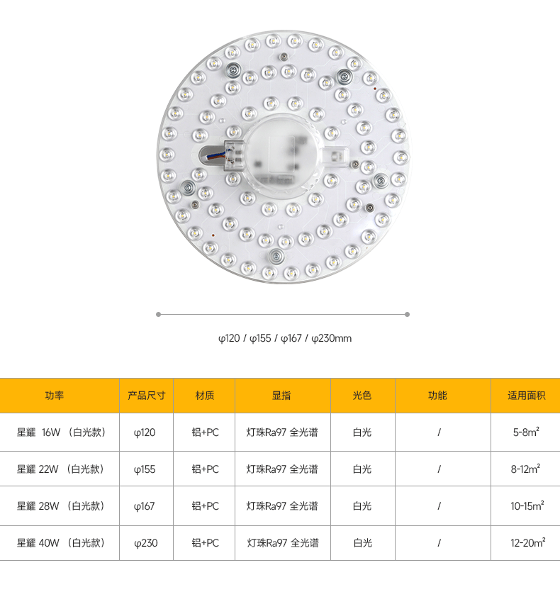 • 40W 원형 화이트 라이트 [전체 스펙트럼 높은 디스플레이 RA97] 스타 샤인