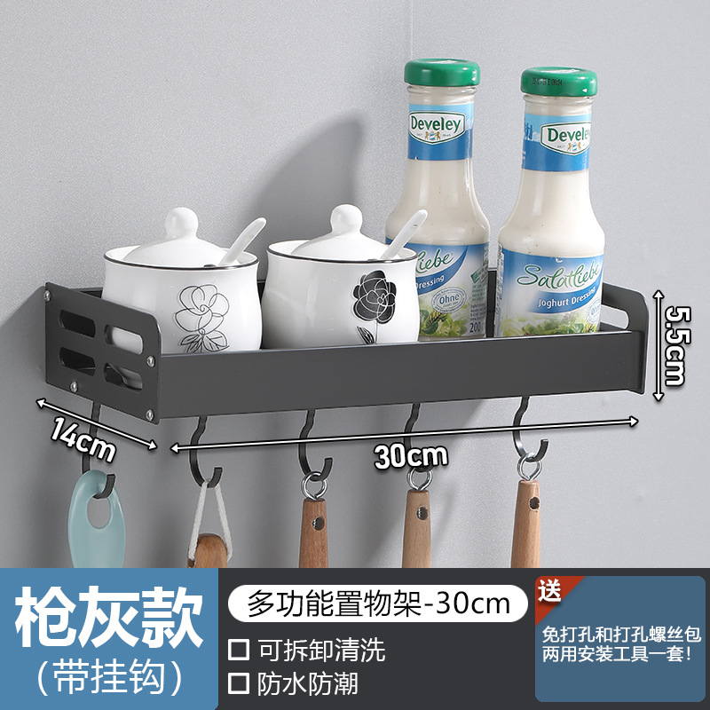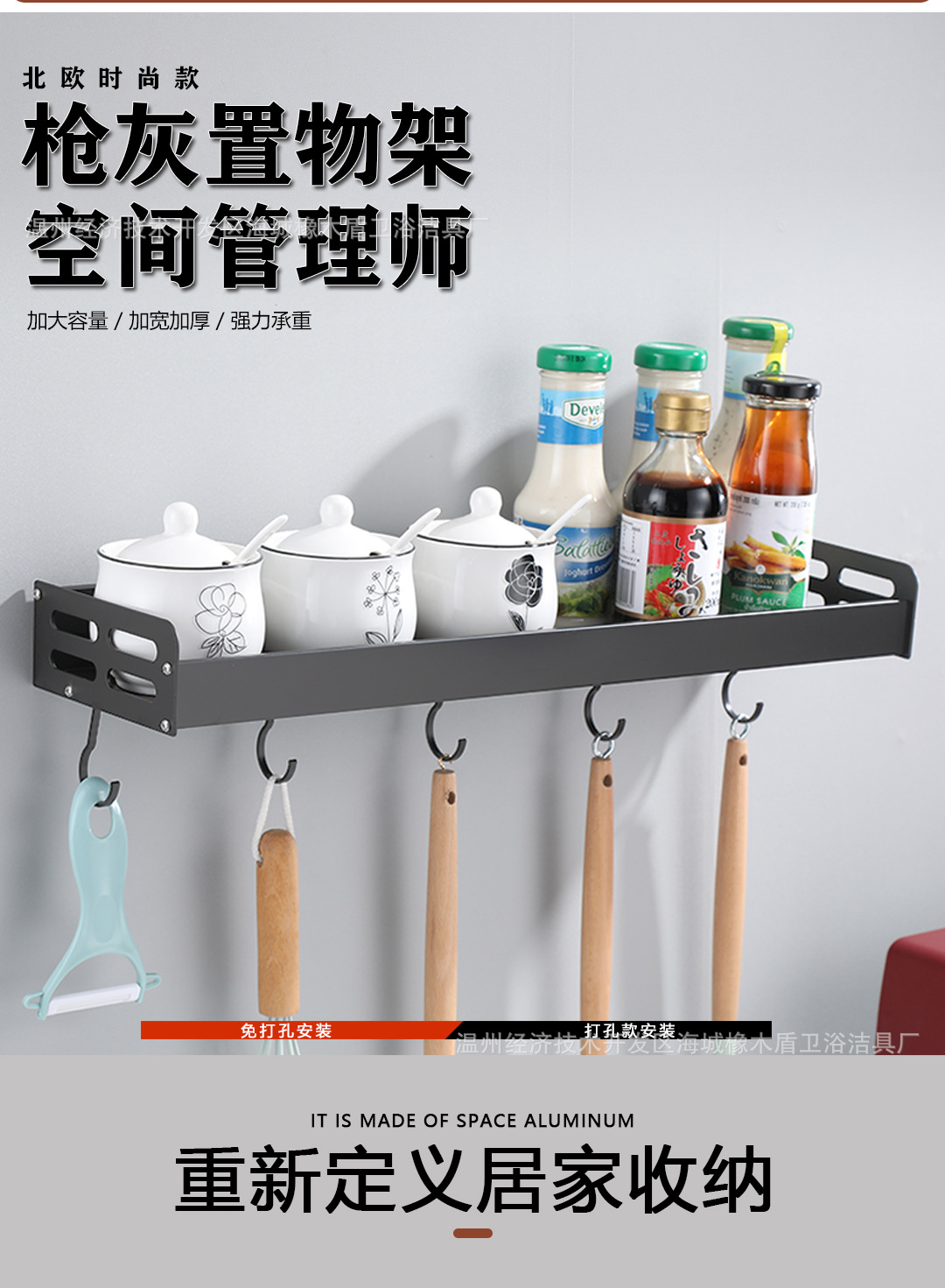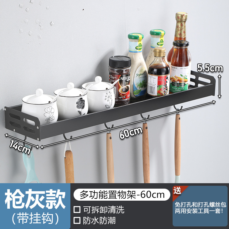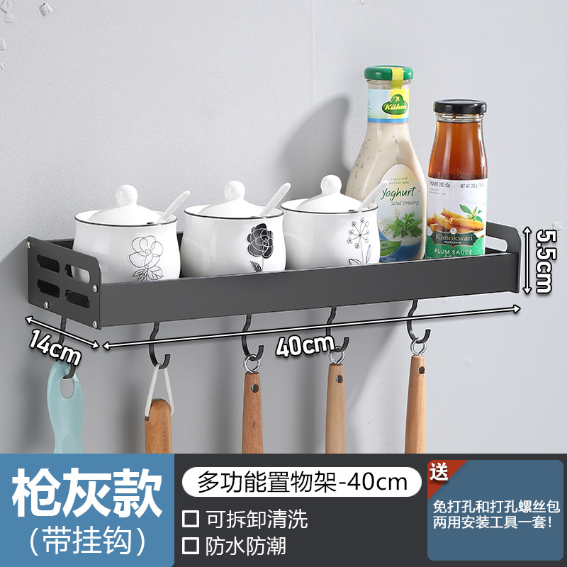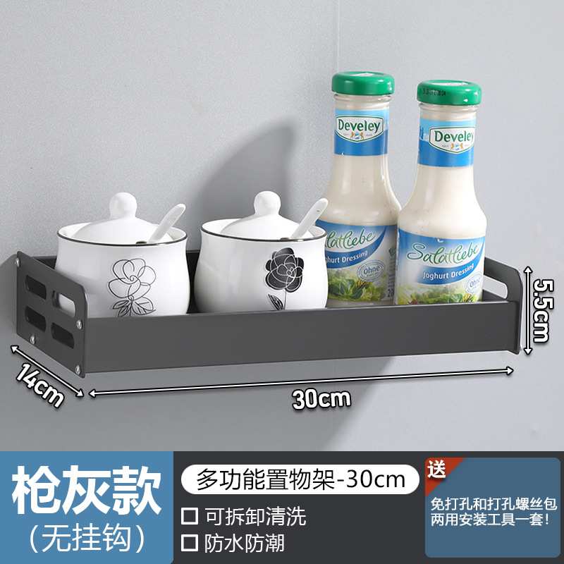 총회색 주방 수납 선반 벽걸이형 양념 선반 무타공 조미료 향신료 보관 선반 오일병 무설치스토어 가기