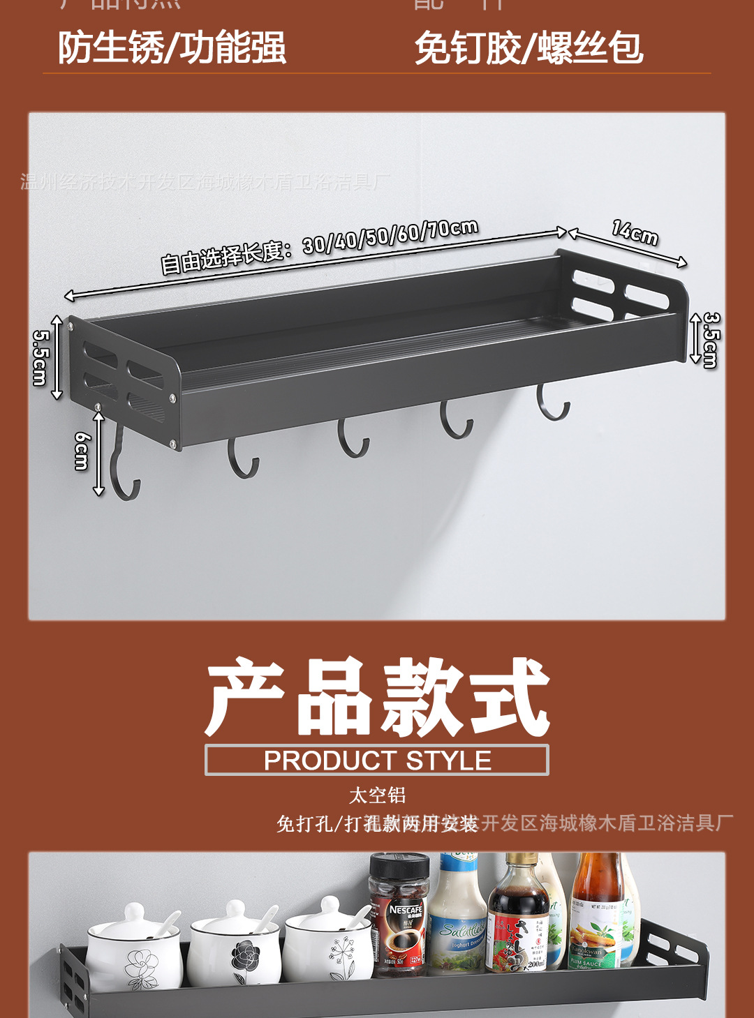 총회색 주방 수납 선반 벽걸이형 양념 선반 무타공 조미료 향신료 보관 선반 오일병 무설치