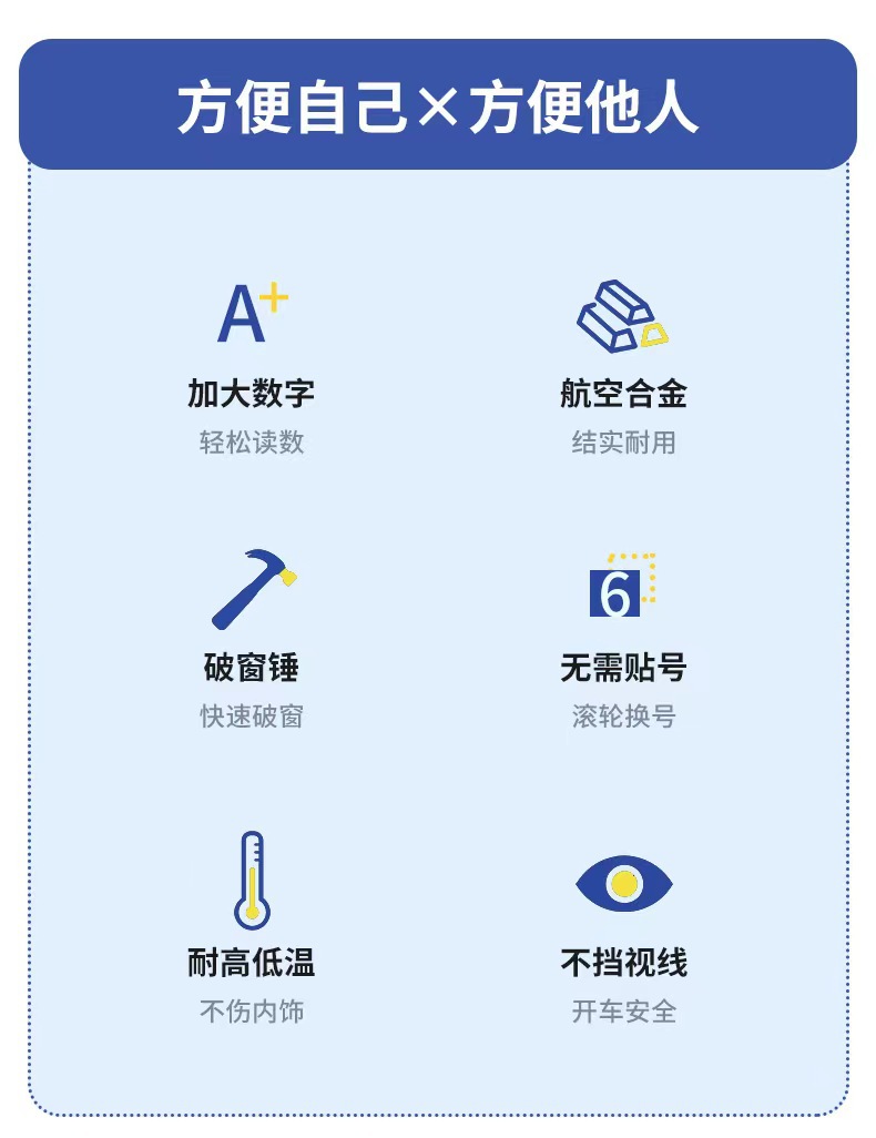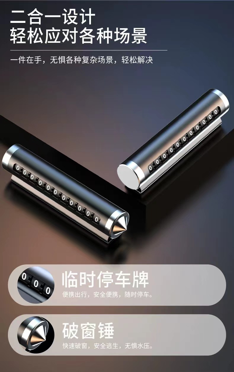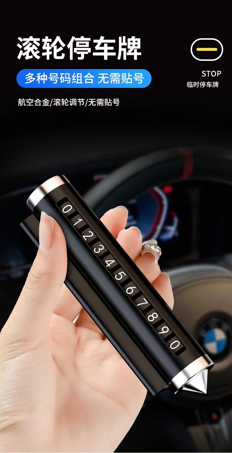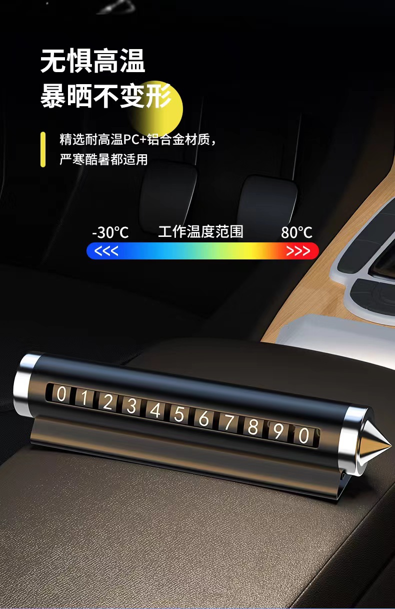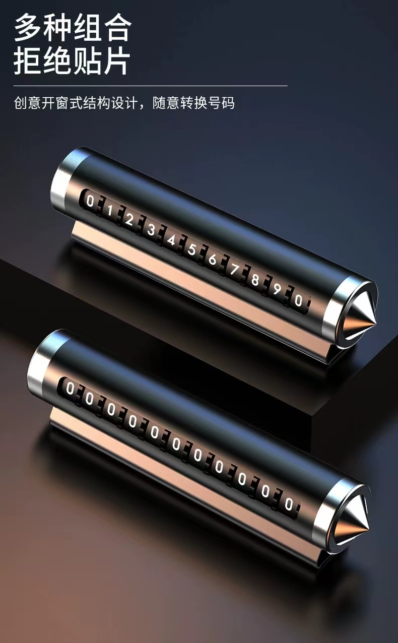 합금 발광 임시 주차 플레이트 자동차 금속 전화 이동 번호판 안전 망치 자동차 용품