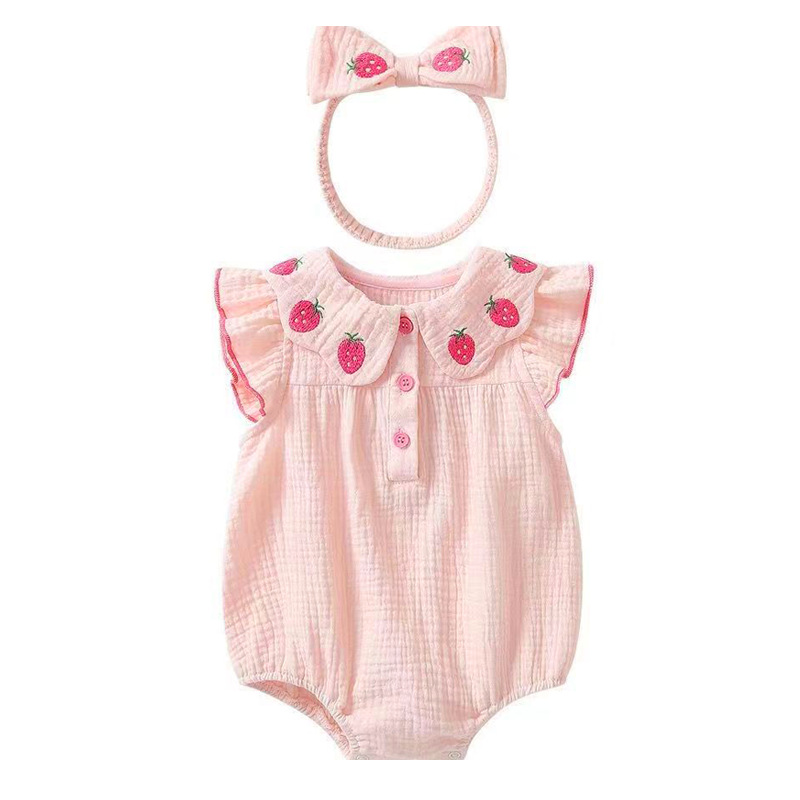 • 플라잉 슬리브 핑크 딸기 점프 수트 헤어 밴드