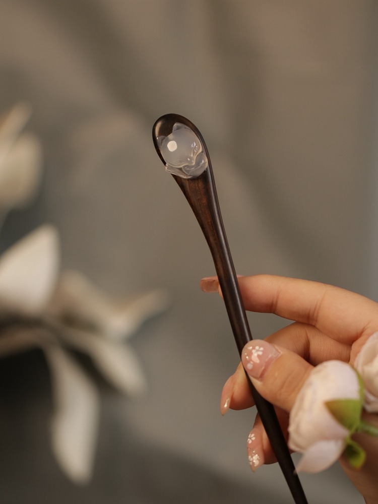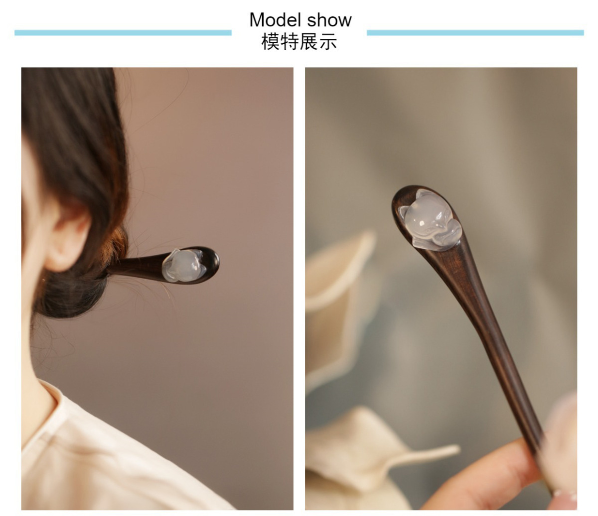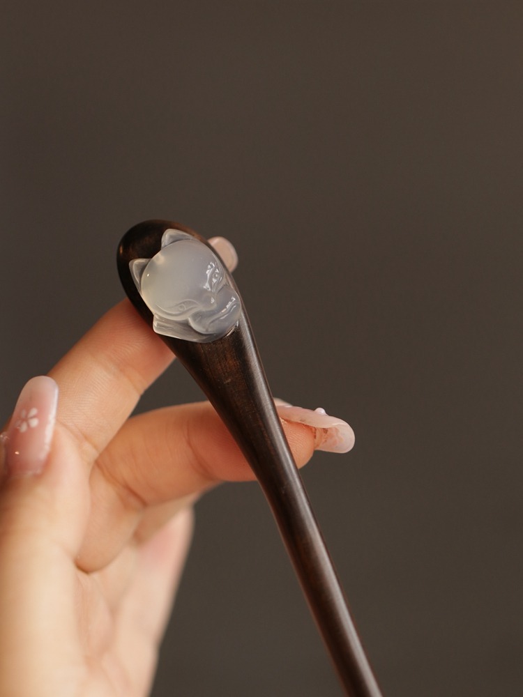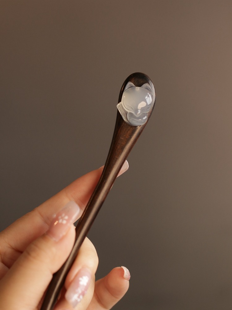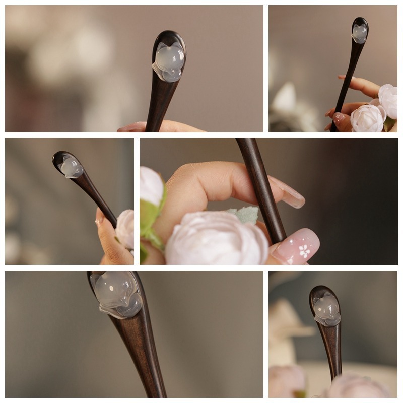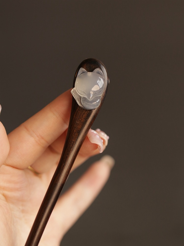 화이트 제이드 폭스 새로운 중국 스타일 골동품 스타일 헤어핀 나무 머리핀 말 얼굴 스커트 한후 액세서리 국가 스타일 현대스토어 가기