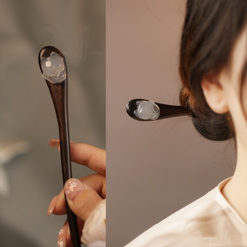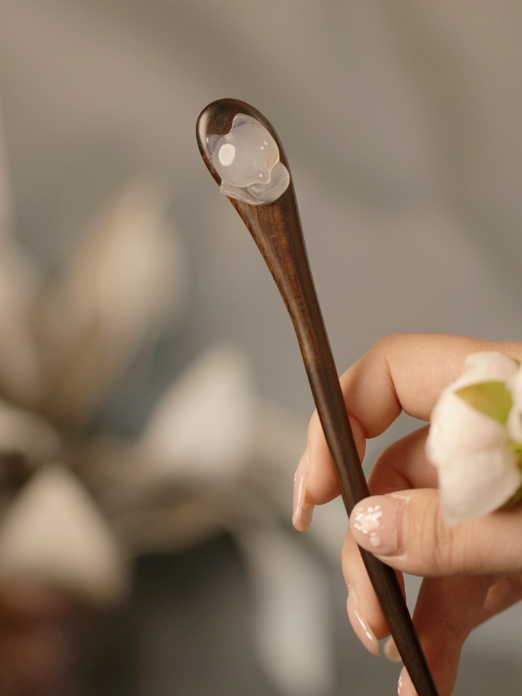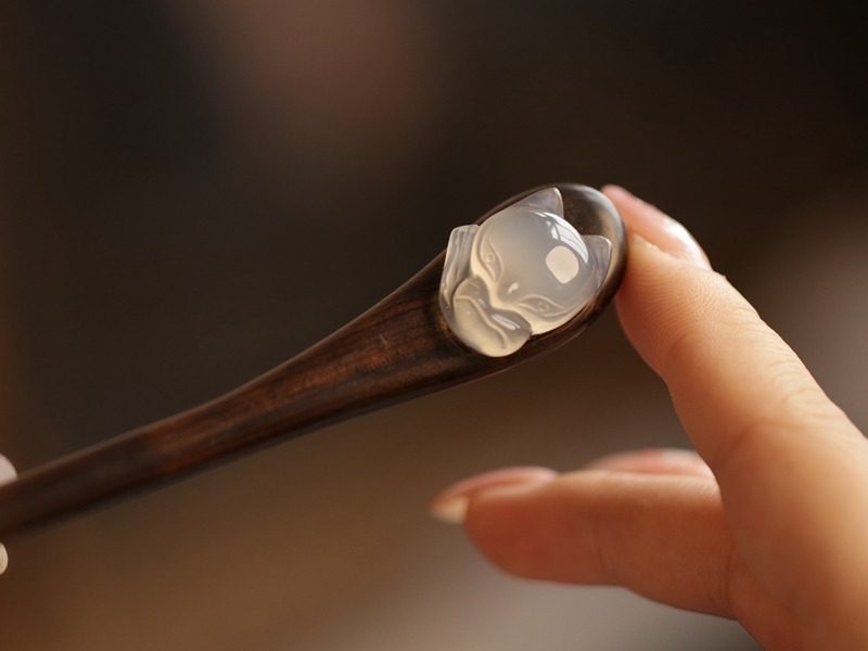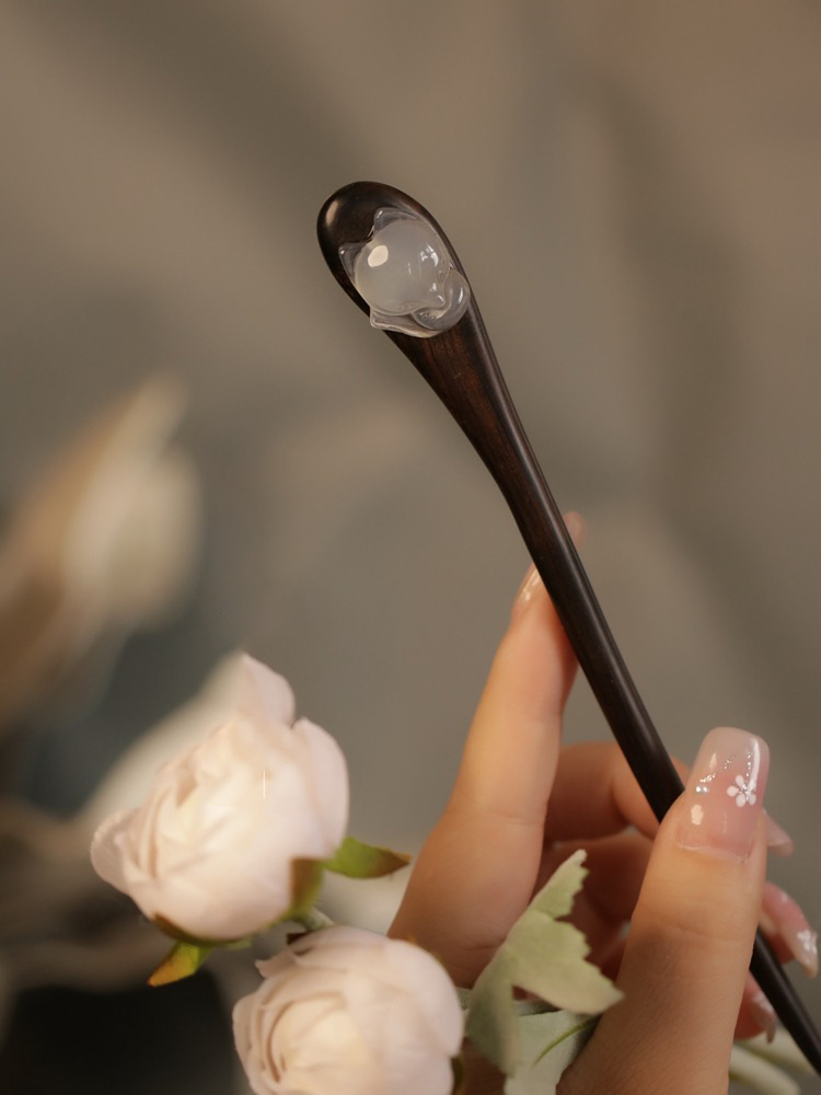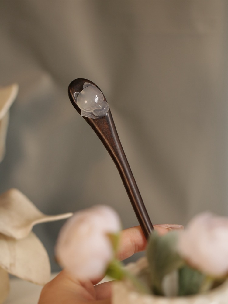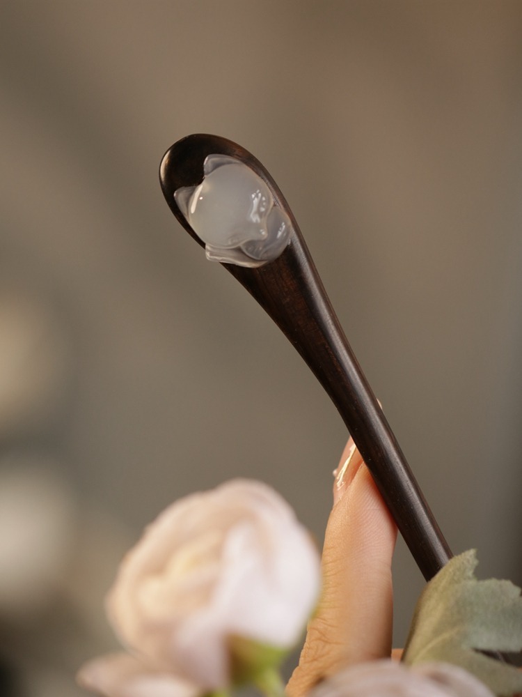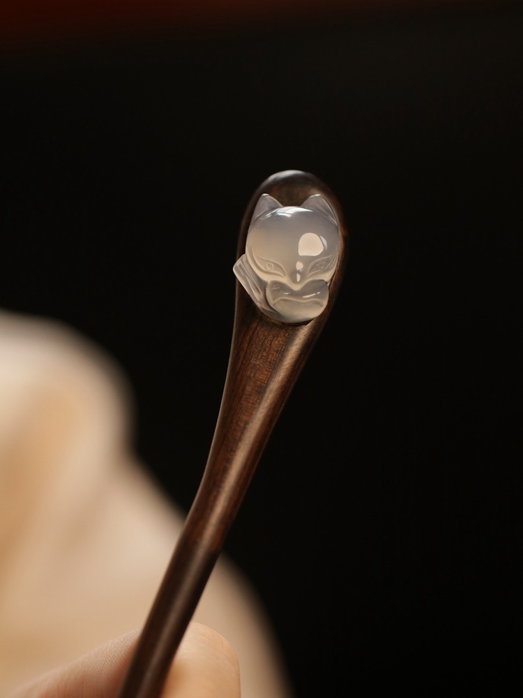 화이트 제이드 폭스 새로운 중국 스타일 골동품 스타일 헤어핀 나무 머리핀 말 얼굴 스커트 한후 액세서리 국가 스타일 현대