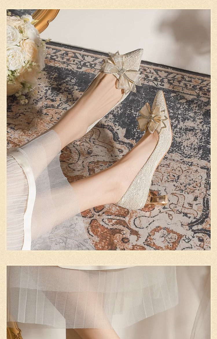 활 크리스탈 하이힐 2024 새로운 성인 의식 프랑스 스틸레토 포인팅 발가락 디너 원피스 피곤하지 않은 발 웨딩 슈즈스토어 가기