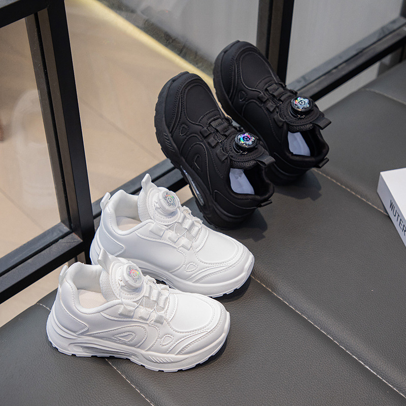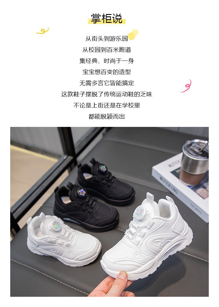 2025 가을 신상 아동화 도매 남아 단색 운동화 여아 회전 버클 고품질 흰색 신발스토어 가기