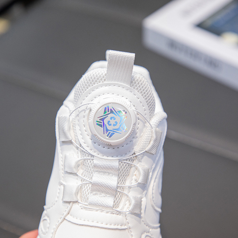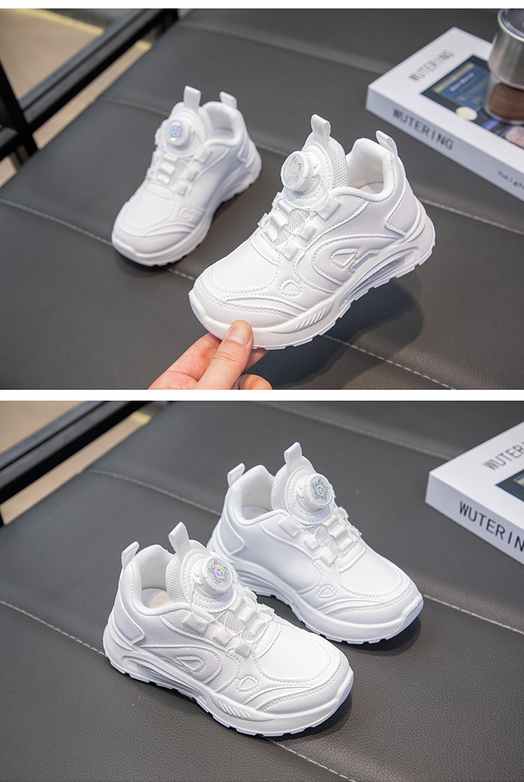 2025 가을 신상 아동화 도매 남아 단색 운동화 여아 회전 버클 고품질 흰색 신발