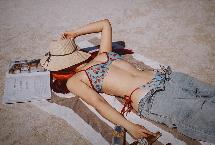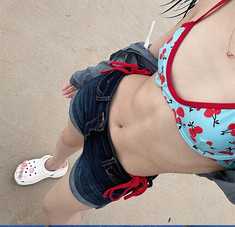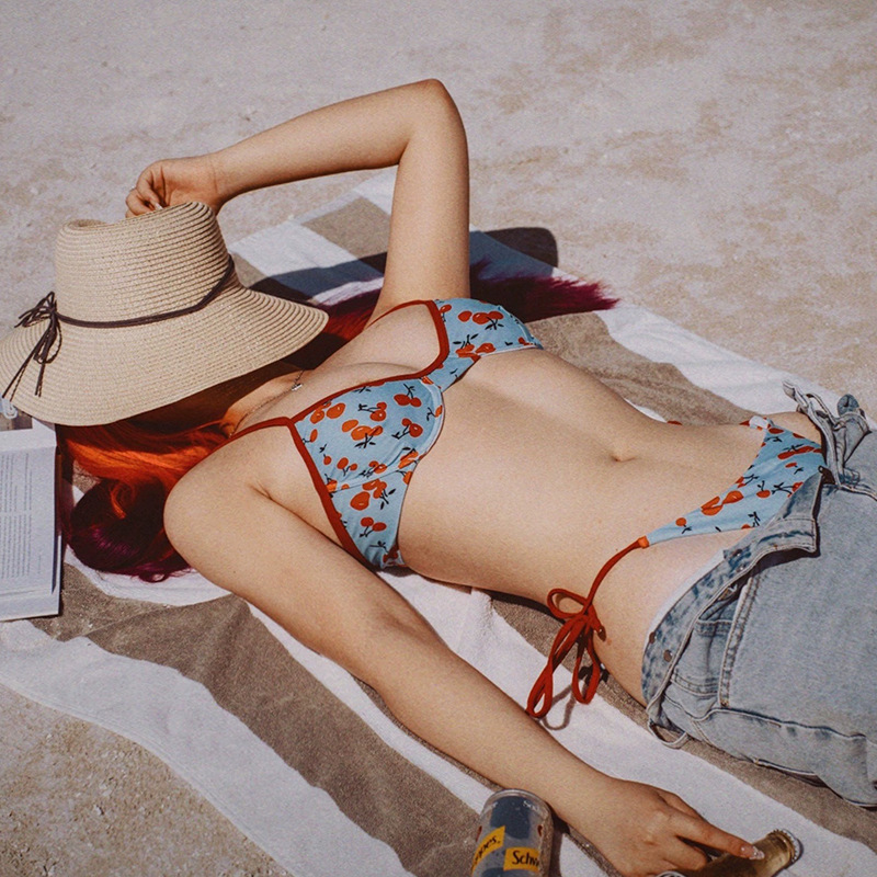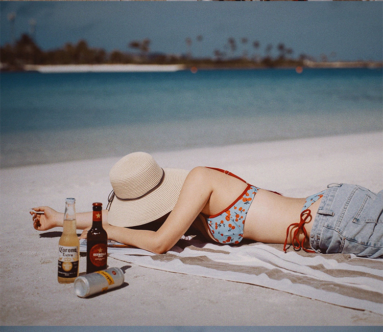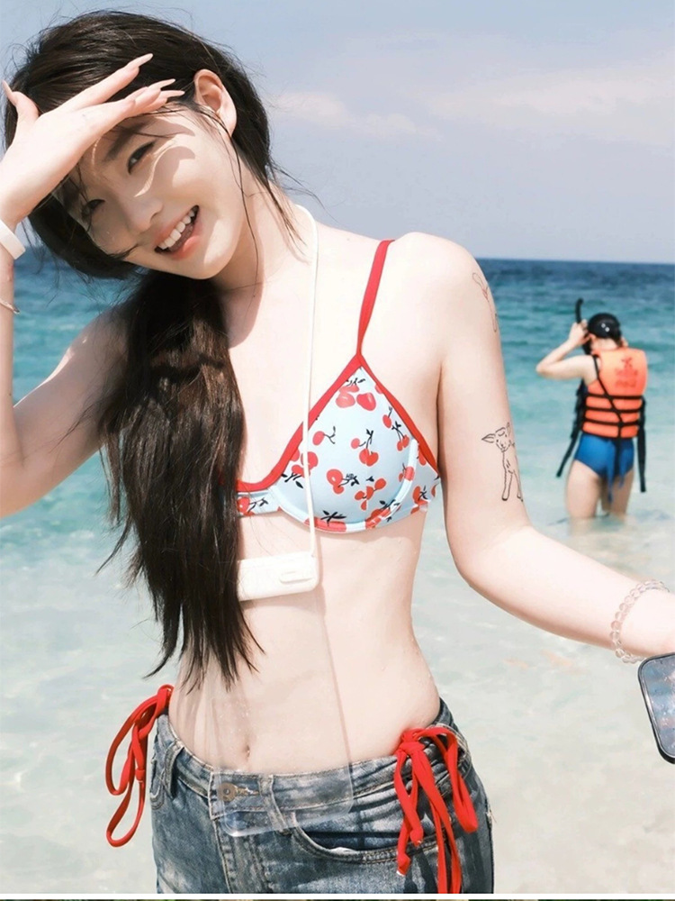국경 새 한국 스타일 뜨거운 소녀 비키니 Ins 스틸 링 3 점 인쇄 귀여운 소녀 분할 수영복 수집