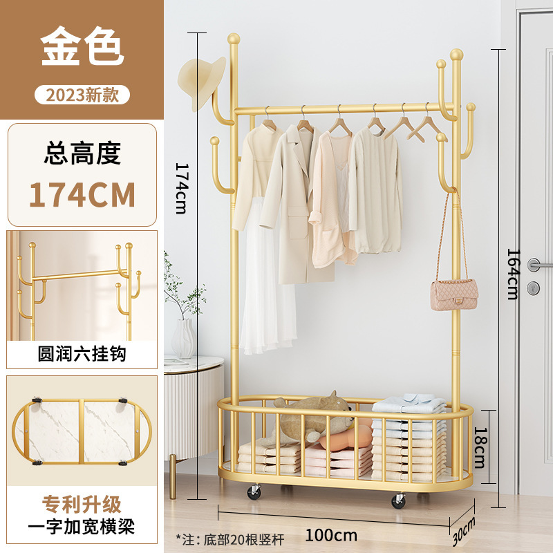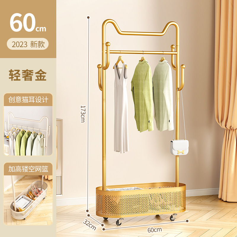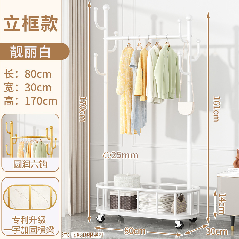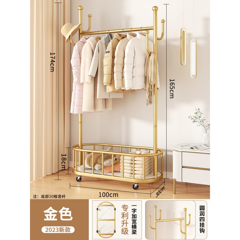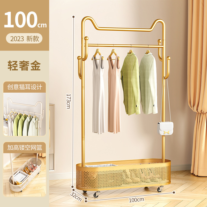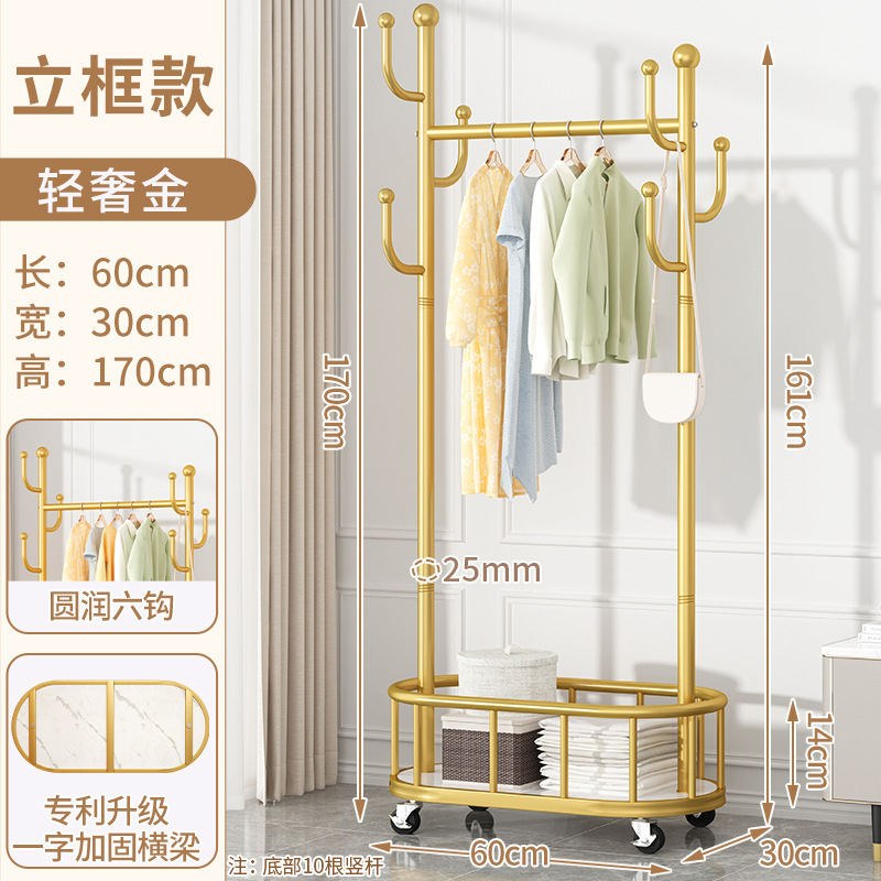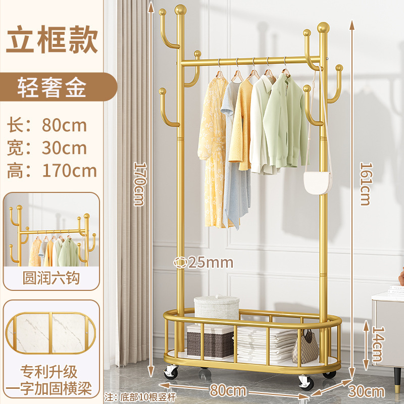 바퀴가 달린 가벼운 고급 이동식 옷걸이, 거실 가정용 옷 보관함, 현대적인 간단한 침실 바닥 옷걸이스토어 가기