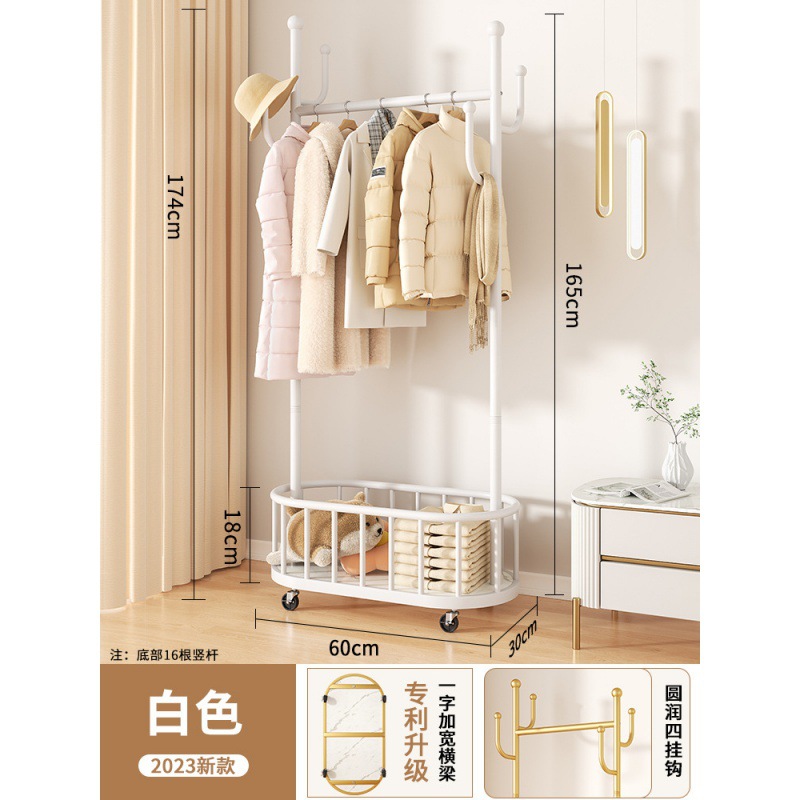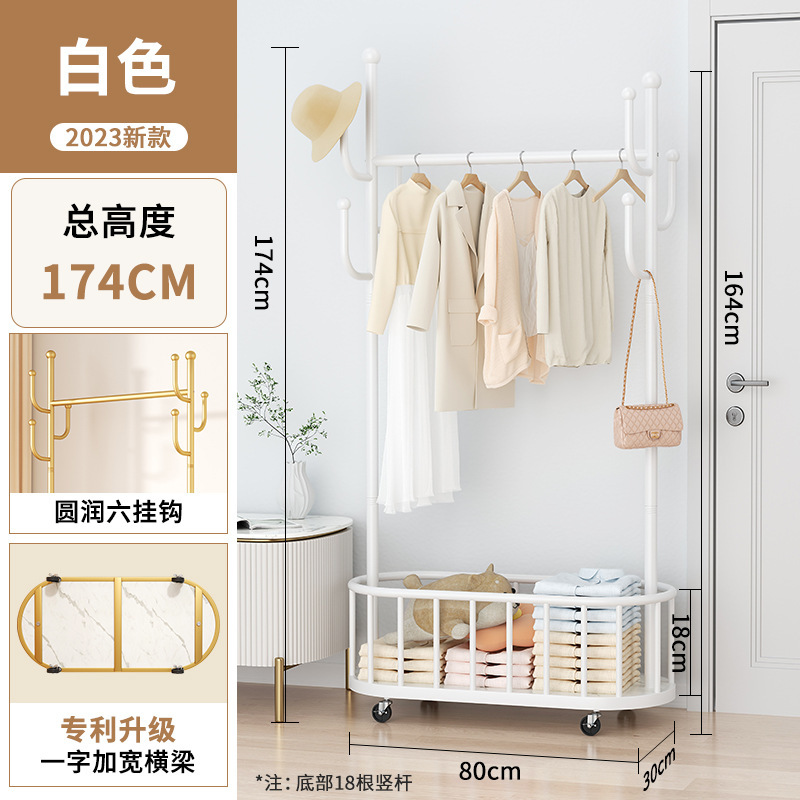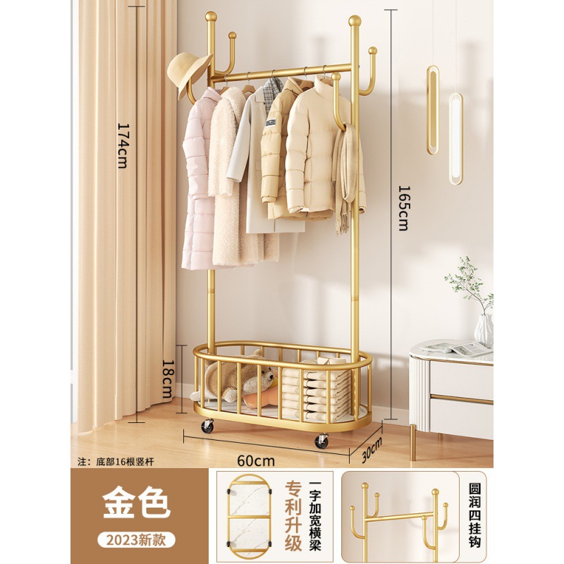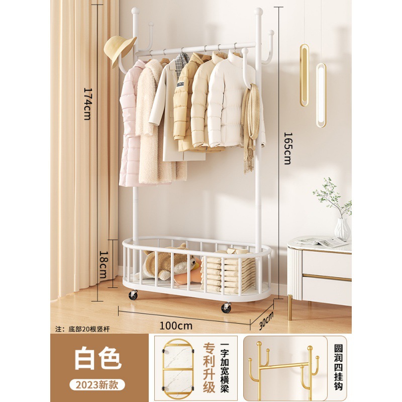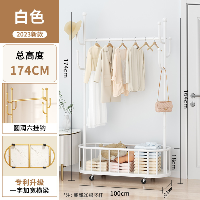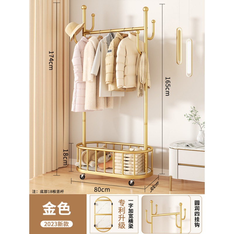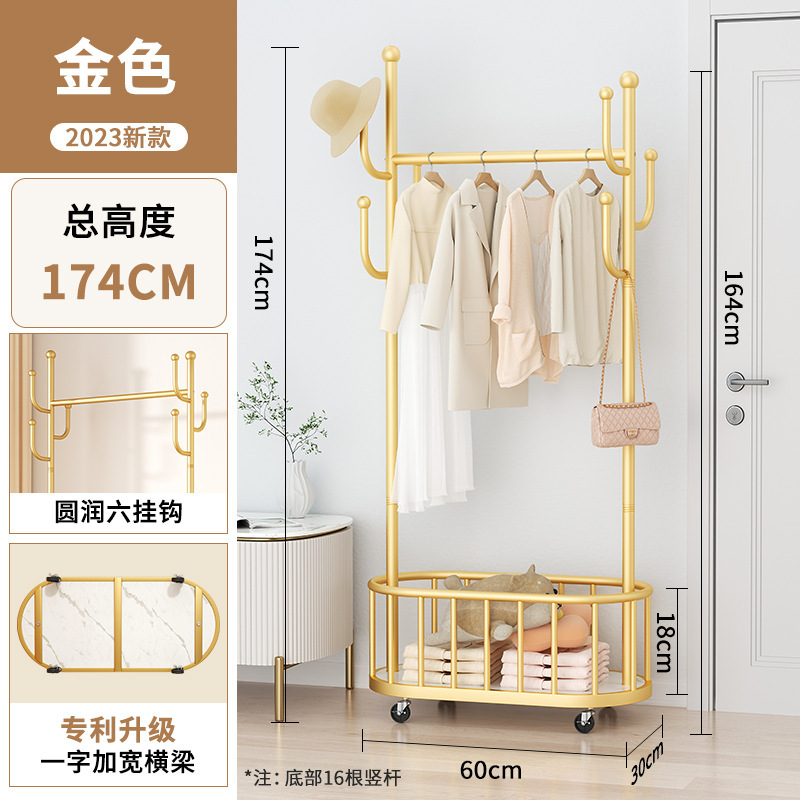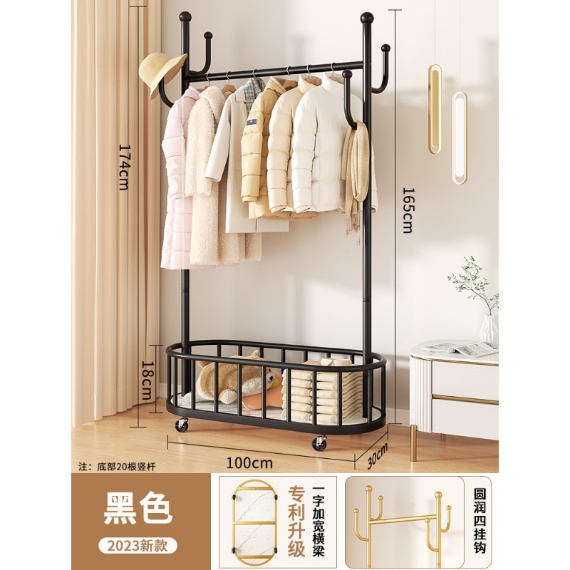바퀴가 달린 가벼운 고급 이동식 옷걸이, 거실 가정용 옷 보관함, 현대적인 간단한 침실 바닥 옷걸이스토어 가기