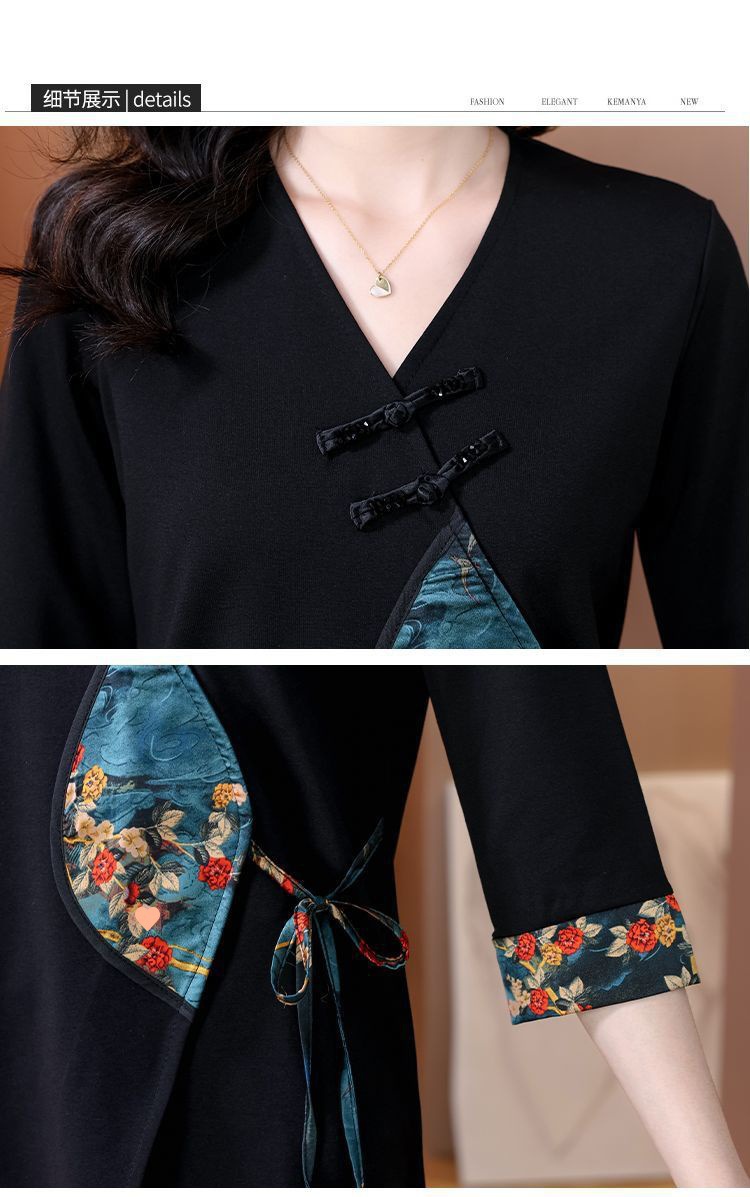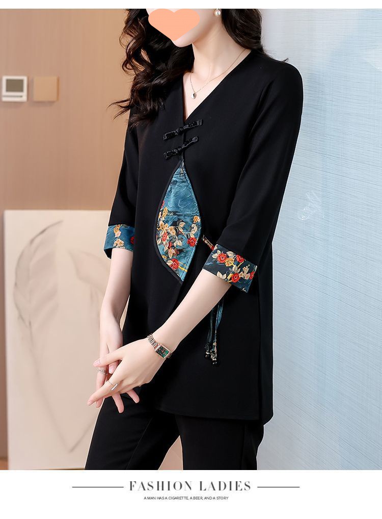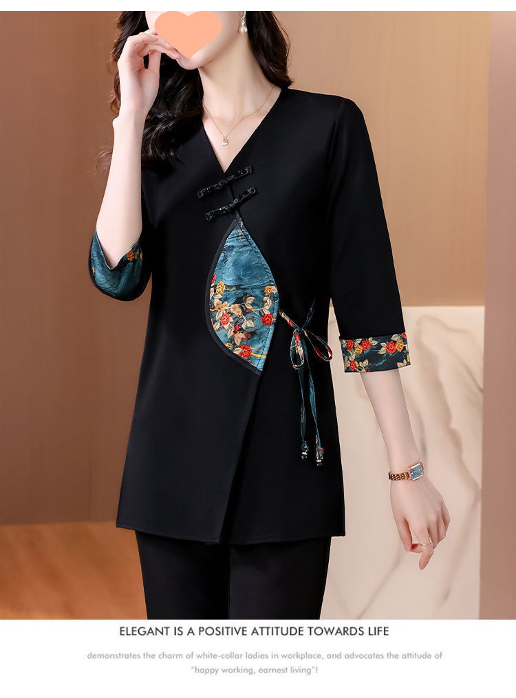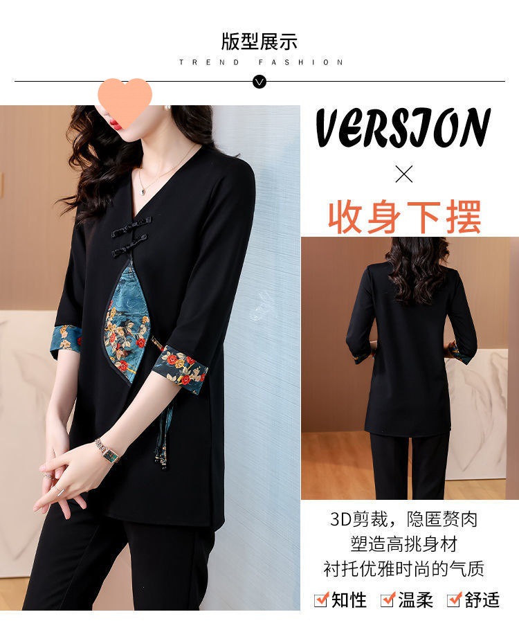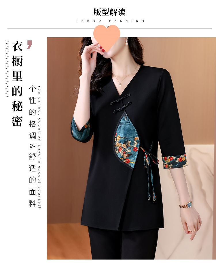 플러스 사이즈 여성 통통한 2024 여름 새로운 중국 스타일 국가 스타일 버튼 칼라 중간 길이 소매 셔츠 탑