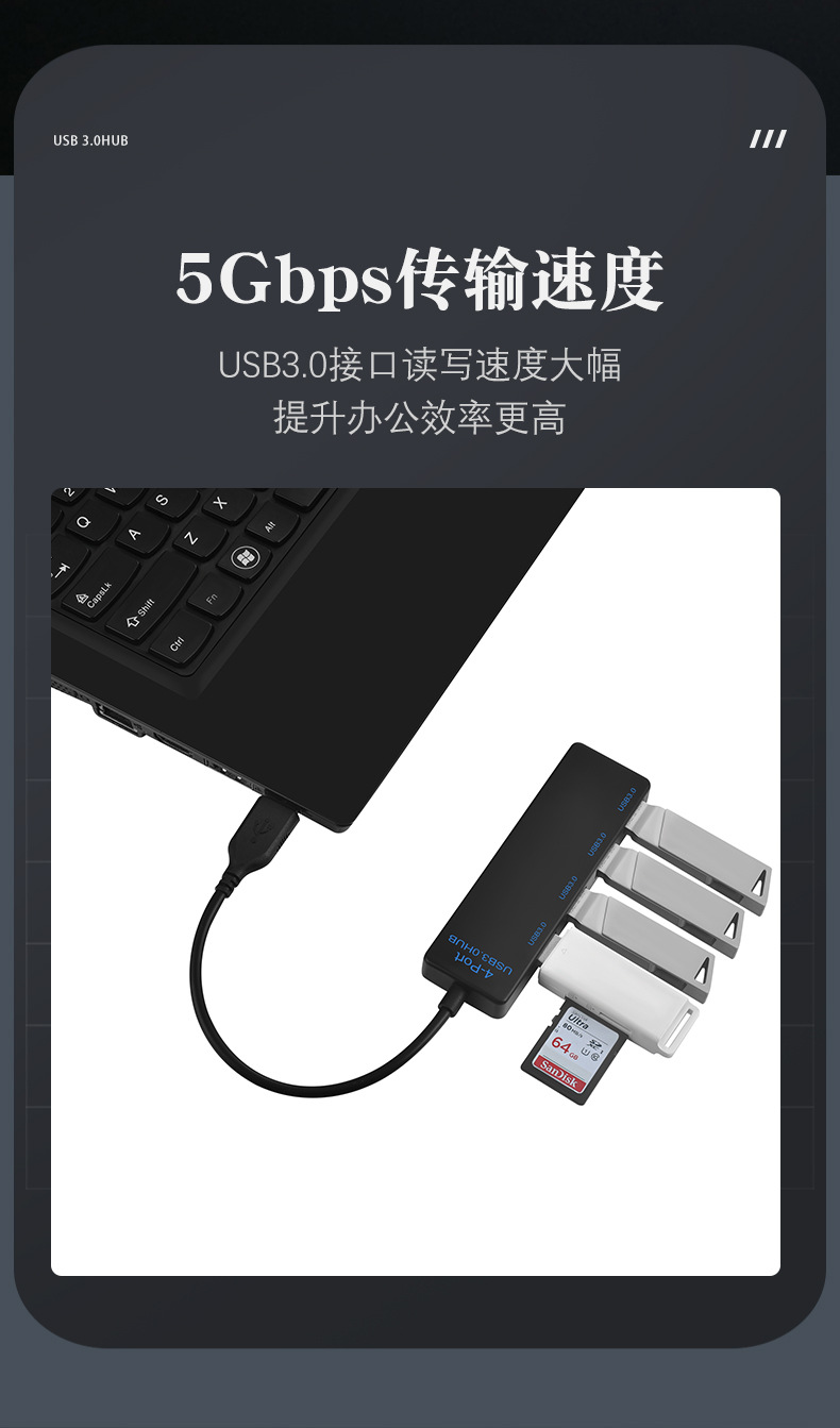 3.0 허브 4포트 USB3.0HUB 확장기 1대4 분배기 USB 커넥터 다중 인터페이스 전송스토어 가기