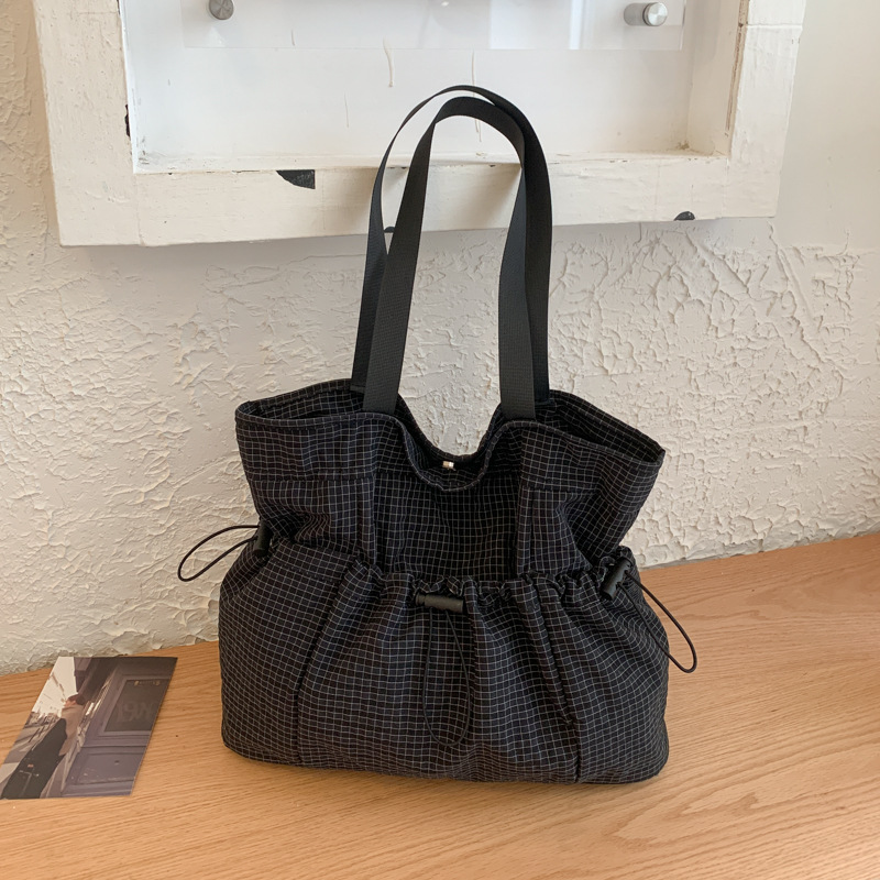 한국 패션 패브릭 숄더 백 2024 새로운 간단한 대용량 토트 백 올 매치 캐주얼 플리츠 마이크 백스토어 가기