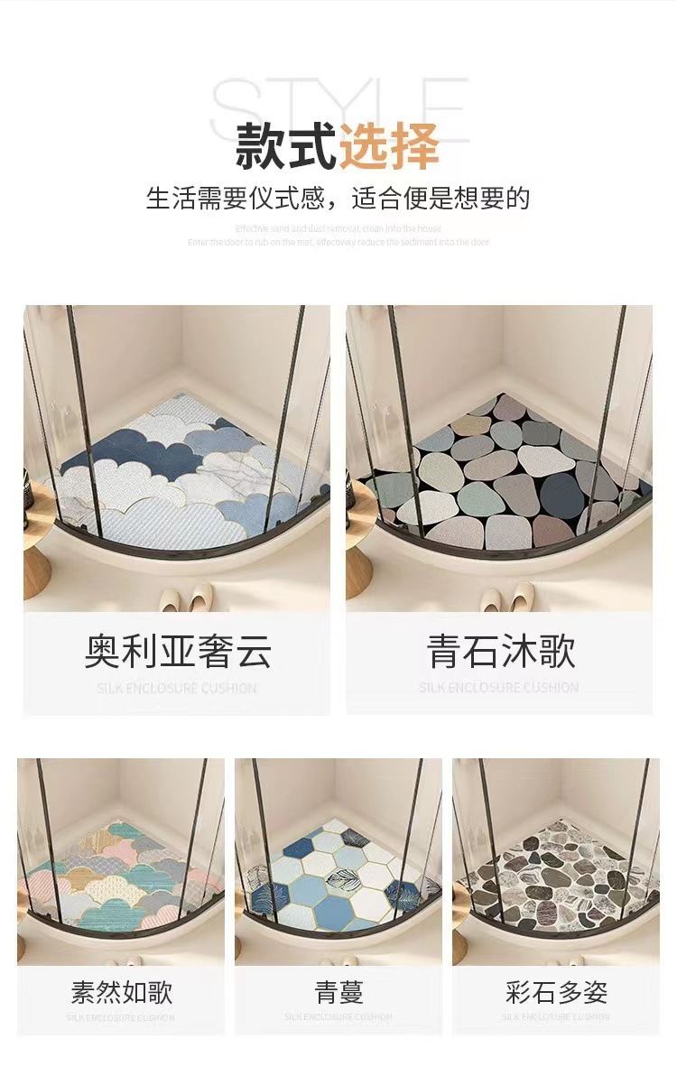 국경 간 가정용 욕실 미끄럼 방지 바닥 매트 작은 아파트 욕실 어린이 낙하 방지 팬 모양의 실크 링 바닥 매트