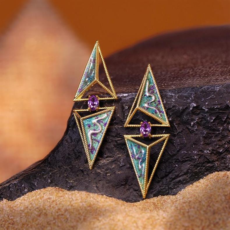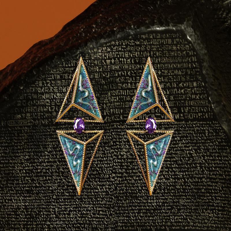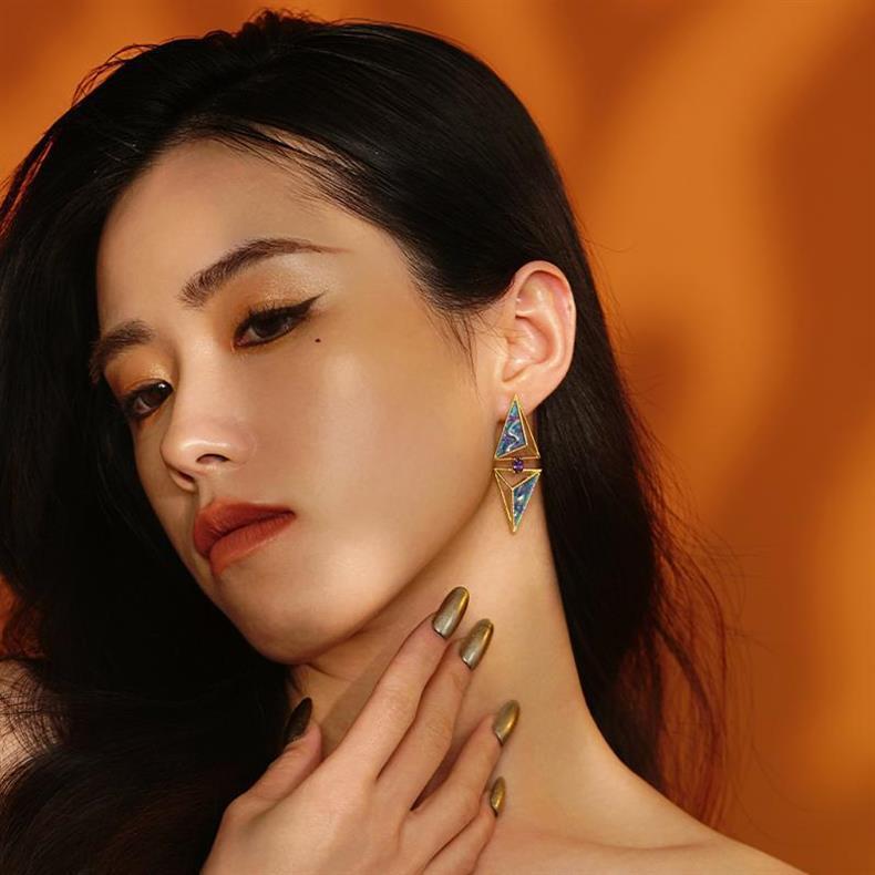 손으로 그린 [황금 왕조-사막의 눈] 왕실 여동생 멋진 이국적인 기질 저녁 귀걸이 귀 클립